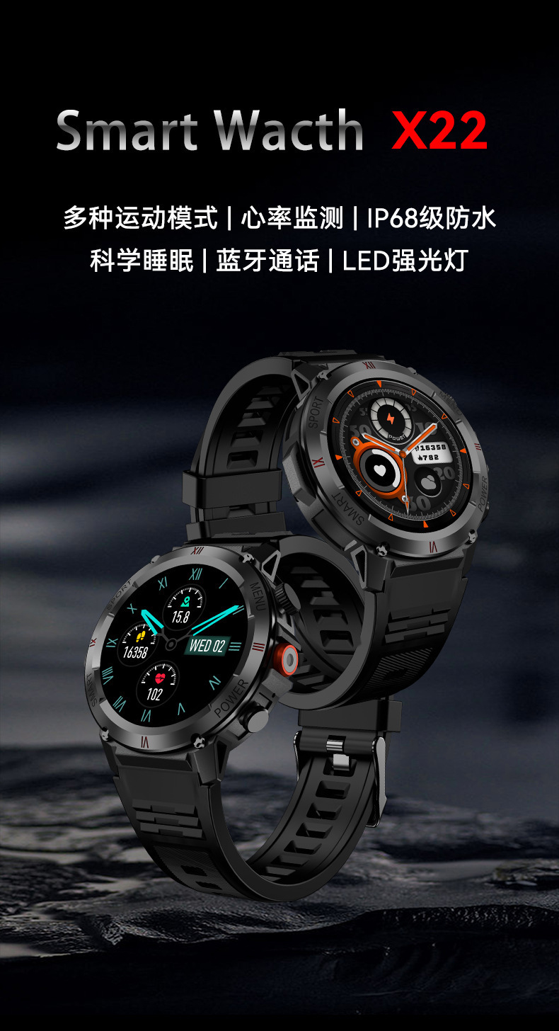 X22 개인 모델 IP68 방수 라운드 스크린 국경 LED 수영 3 방지 모니터링 DaFit 야외 스포츠 스마트 시계스토어 가기
