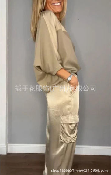 유럽과 미국의 국경 간 여성 세트 독립 역 인기있는 단색 새틴 캐주얼 패션 바지 두 조각 세트 여성스토어 가기