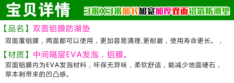 午休垫折叠防水加宽3米X3米防潮垫 户外超轻帐篷睡垫地铺厚铝膜垫