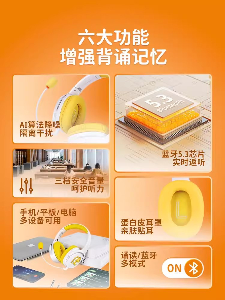 밀크 드래곤 헤드셋 무선 블루투스 헤드셋 소음 감소 후속 독서 귀 반환 학생 온라인 수업 학습 읽기 유물스토어 가기