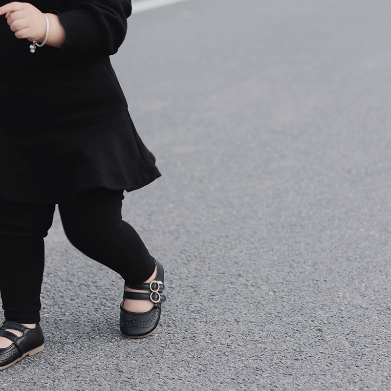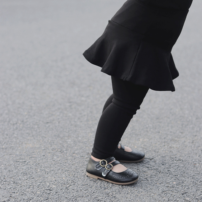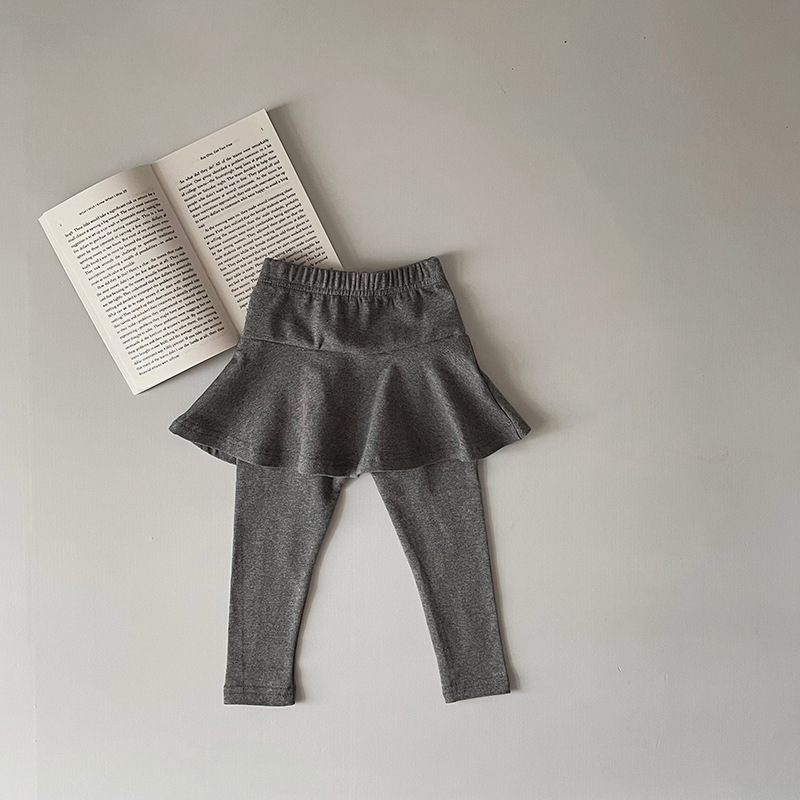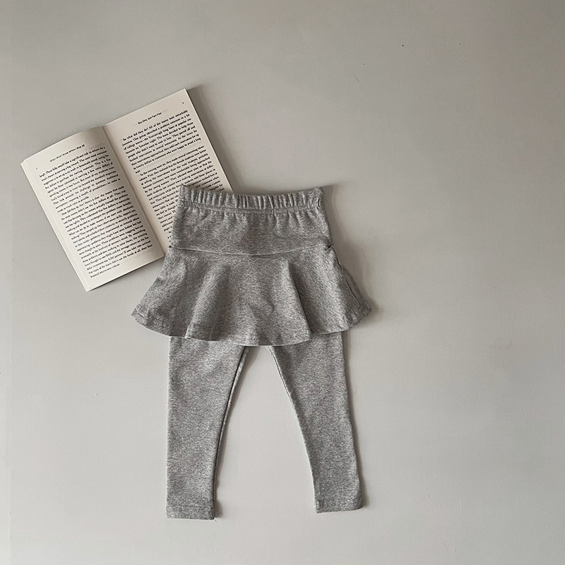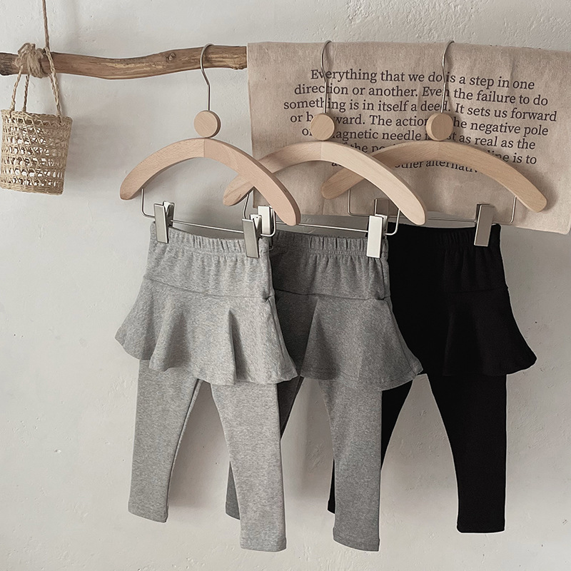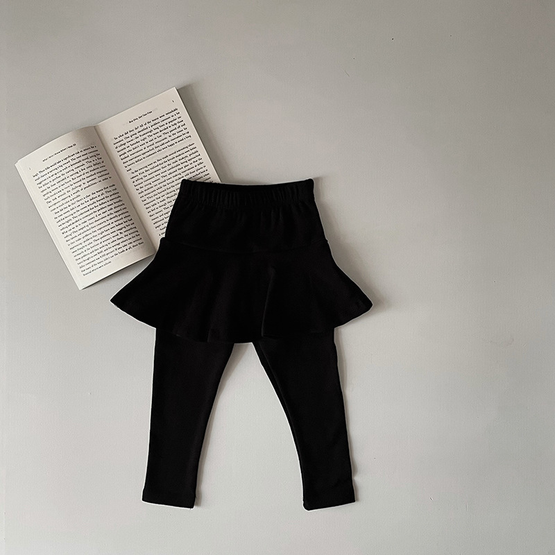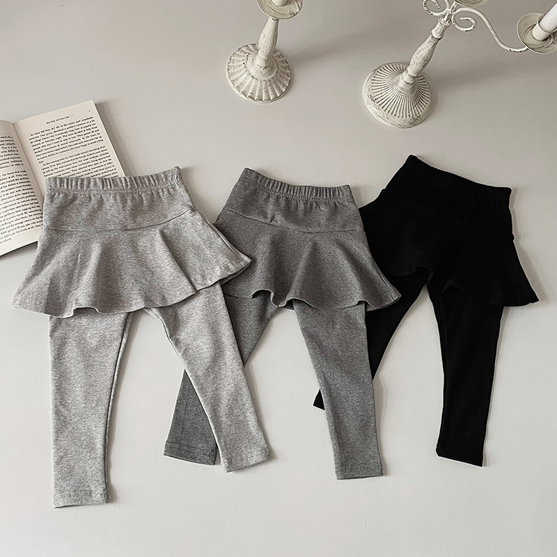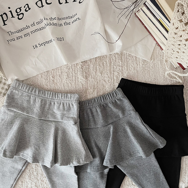 소녀 레깅스 새로운 봄과 가을 새로운 가짜 투피스 러플 컬로 트 어린이 슬림 핏 다재다능한 스티칭 바지