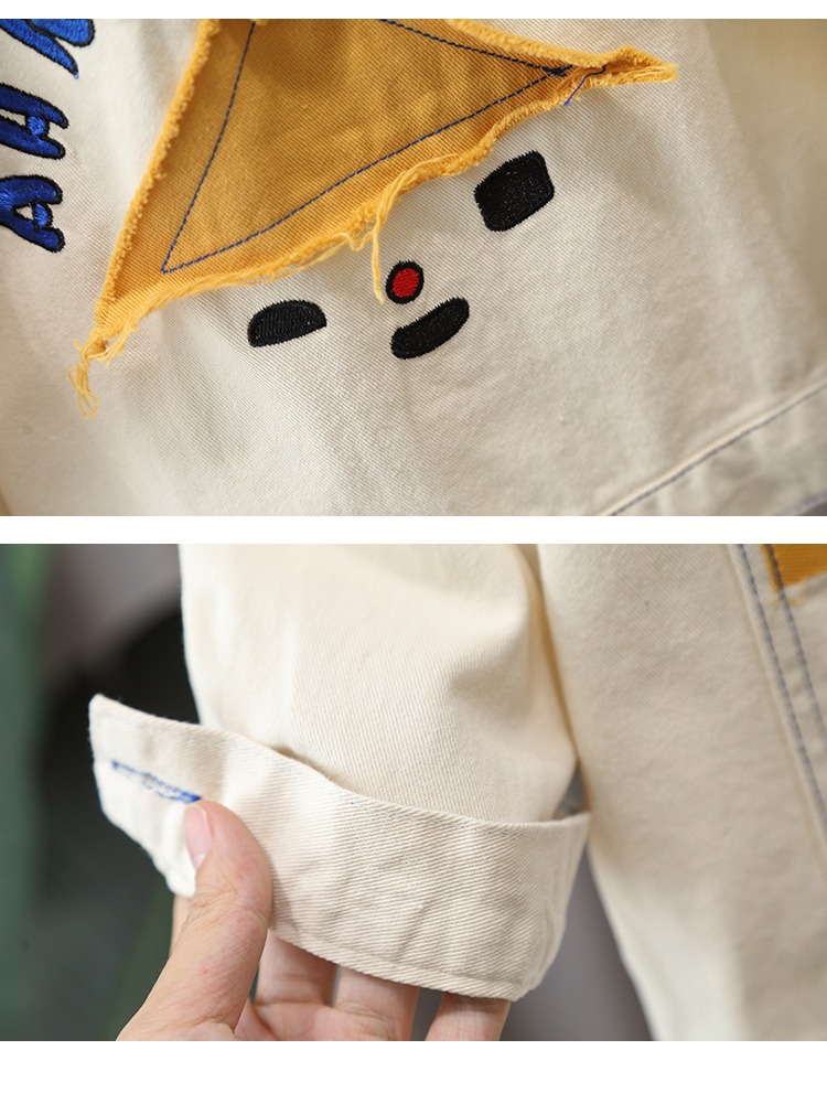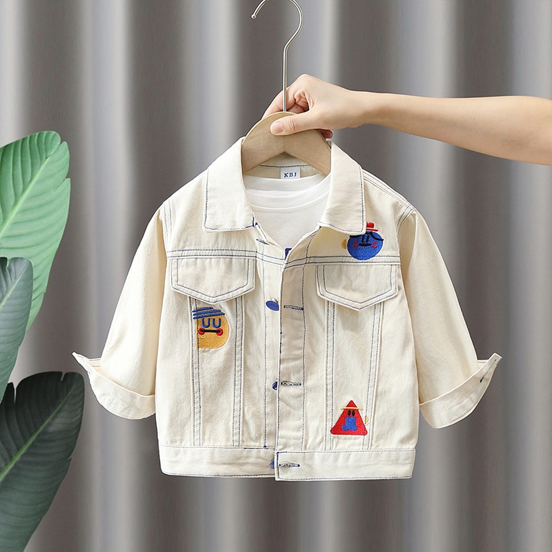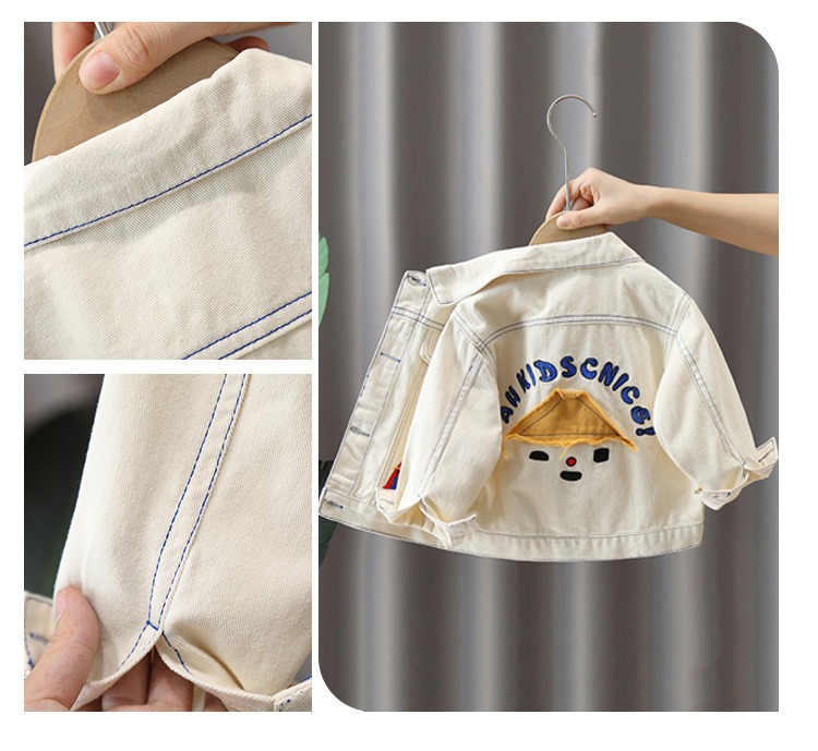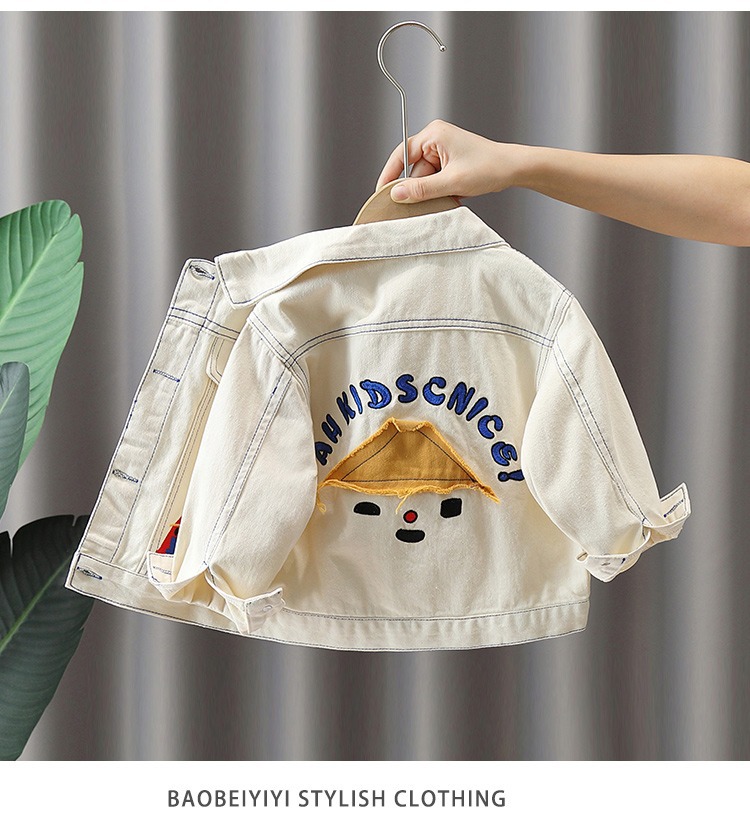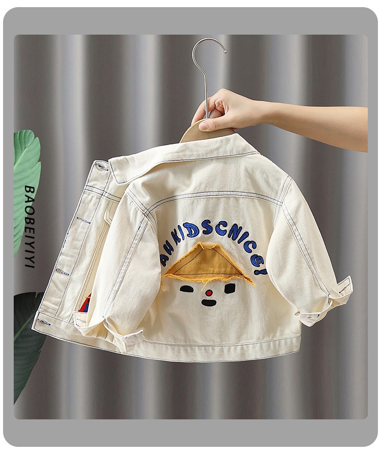 어린이 봄 코트 2024 새 소년 튀긴 거리 옷깃 데님 자켓 아기 봄과 가을 유행 아동복 탑스토어 가기