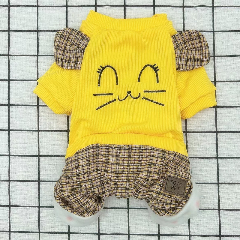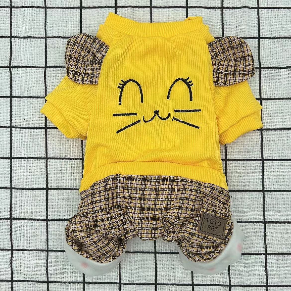가을과 겨울의 새로운 개 웃는 얼굴 옷 와인 양동이를 두껍게 한 네 다리 옷 테디 베어 눈 Rena VIP 네발 코튼 패딩 옷