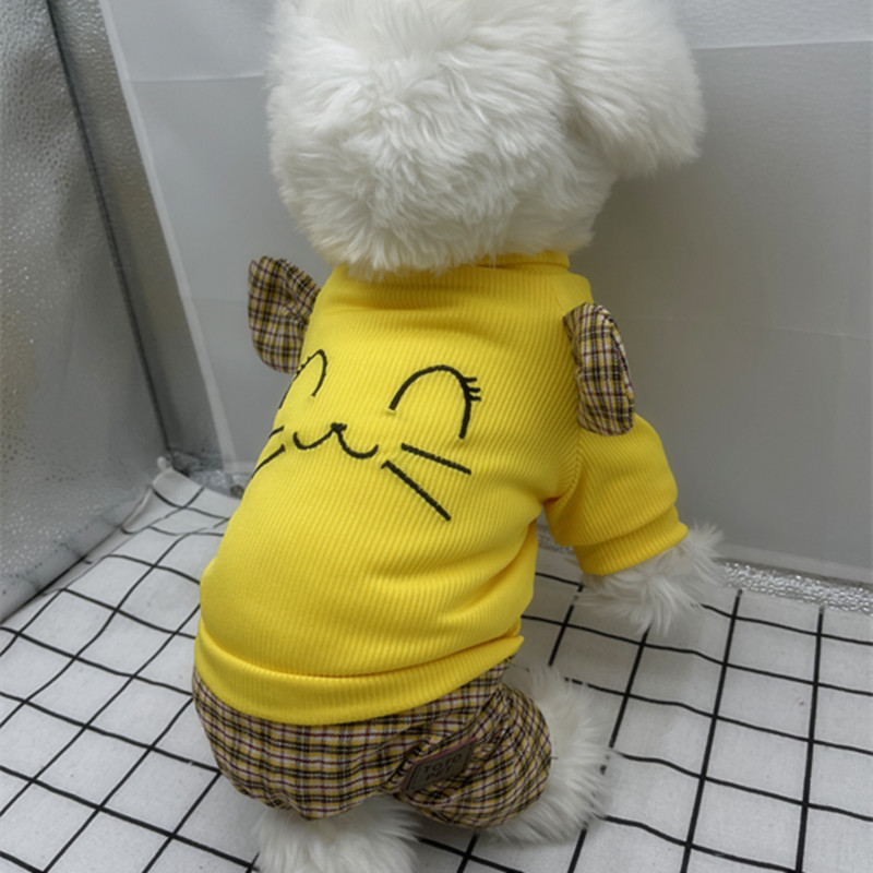 가을과 겨울의 새로운 개 웃는 얼굴 옷 와인 양동이를 두껍게 한 네 다리 옷 테디 베어 눈 Rena VIP 네발 코튼 패딩 옷스토어 가기