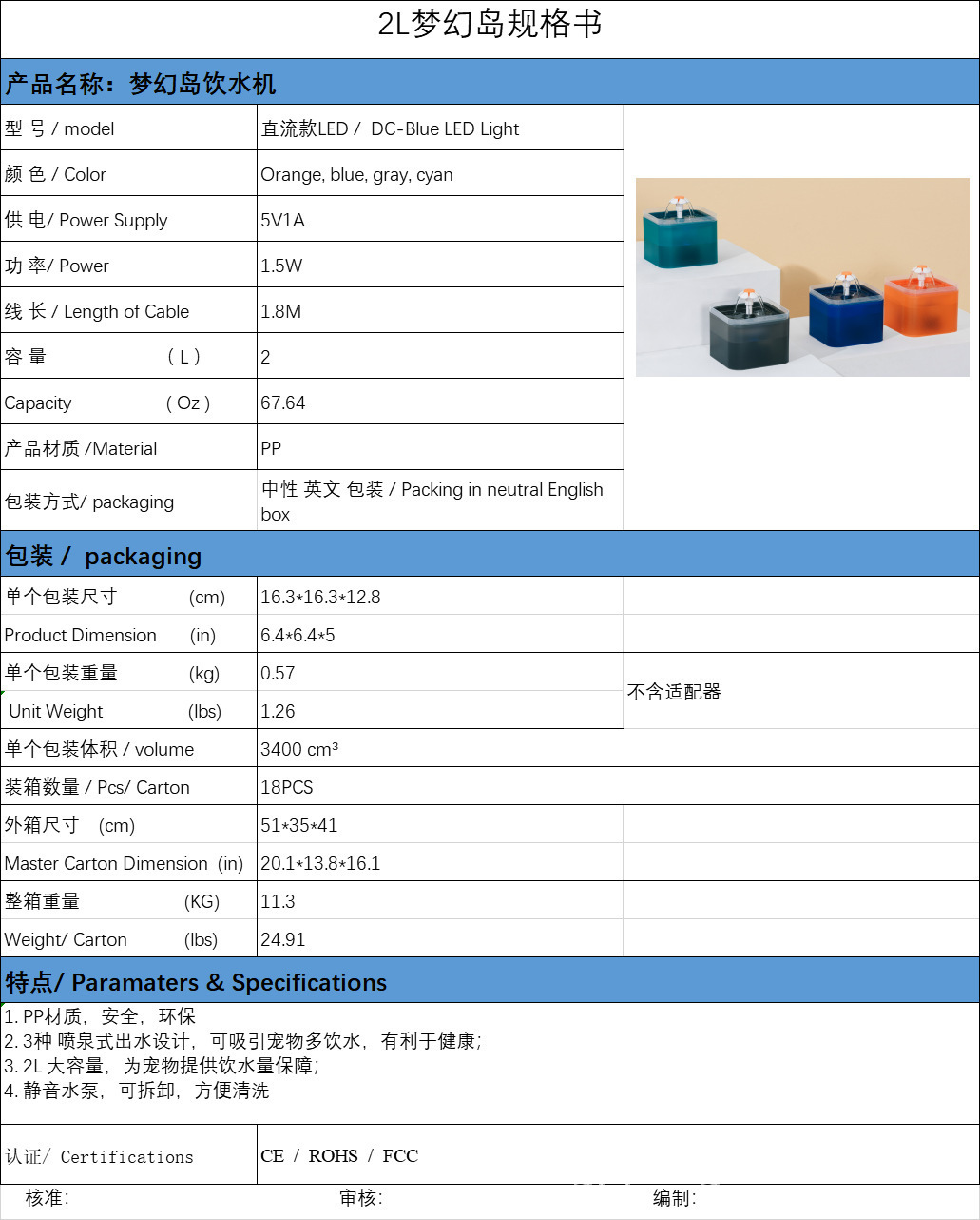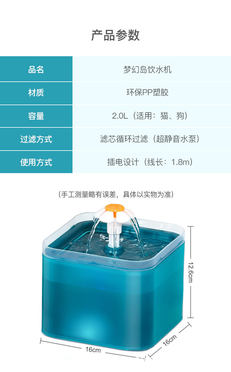 Amazon BS 인기 스마트 애완 동물 워터 디스펜서 2L 레인보우 아일랜드 자동 순환 피더 고양이 그릇 개 그릇