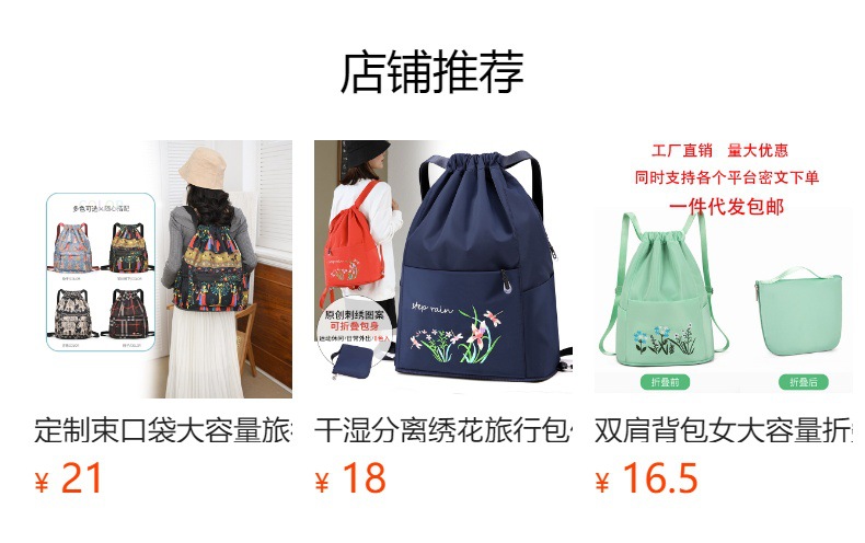 인쇄 된 저장 가방 유행 drawstring 배낭 경량 대용량 캐주얼 올 매치 트렌디 한 야외 여행 배낭스토어 가기