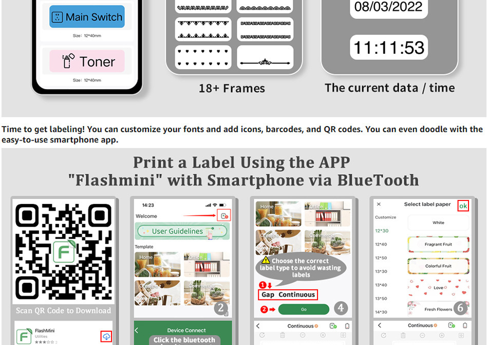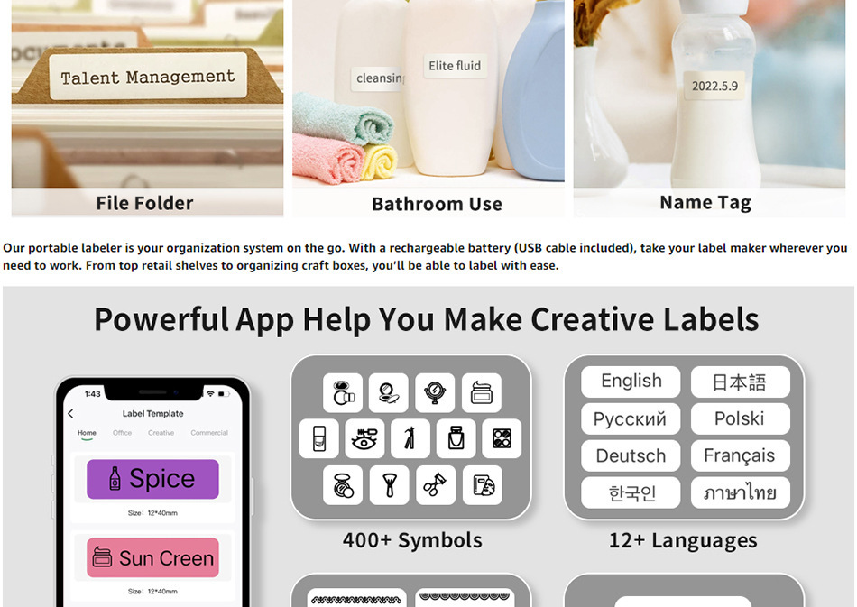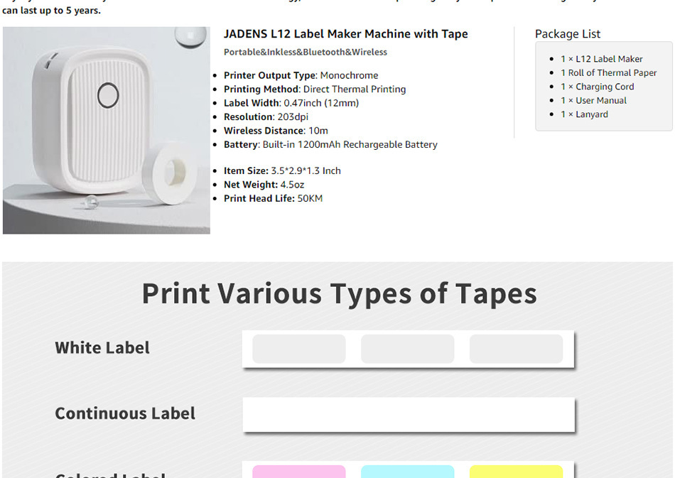 라벨 프린터 HD 미니 포켓 블루투스 무선 휴대용 사무실 잉크 프리 인쇄 고속스토어 가기