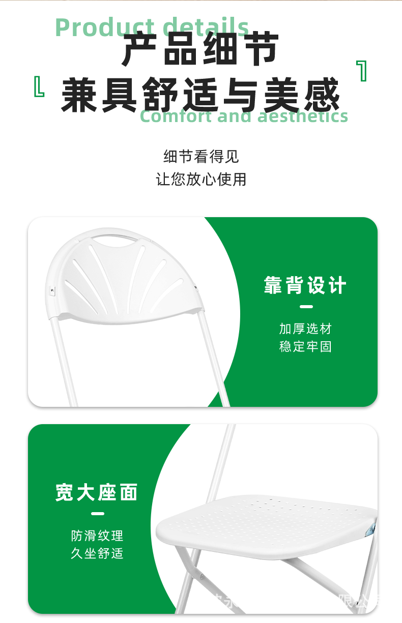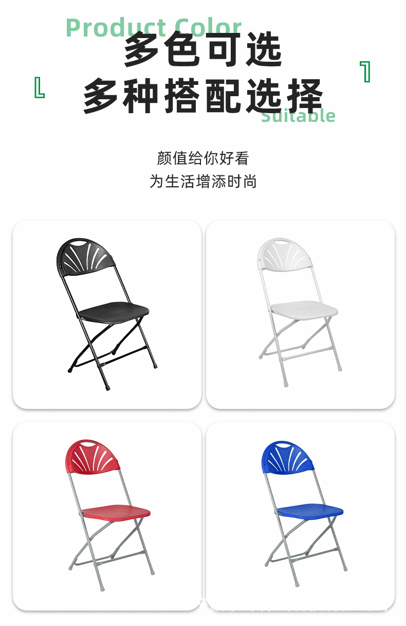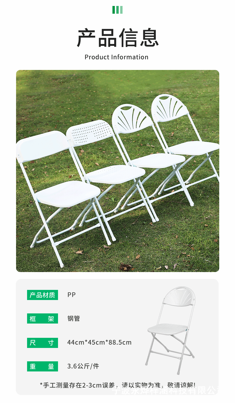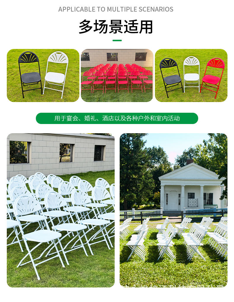공장에서 제작된 휴대용 야외 잔디밭 웨딩 의자, 상업용 경량 내구성 팬형 등받이, 구멍이 있는 좌석판, 플라스틱 접이식 의자스토어 가기