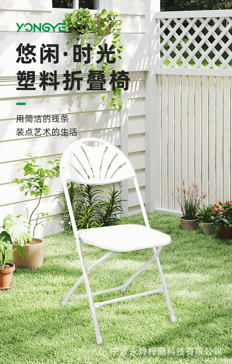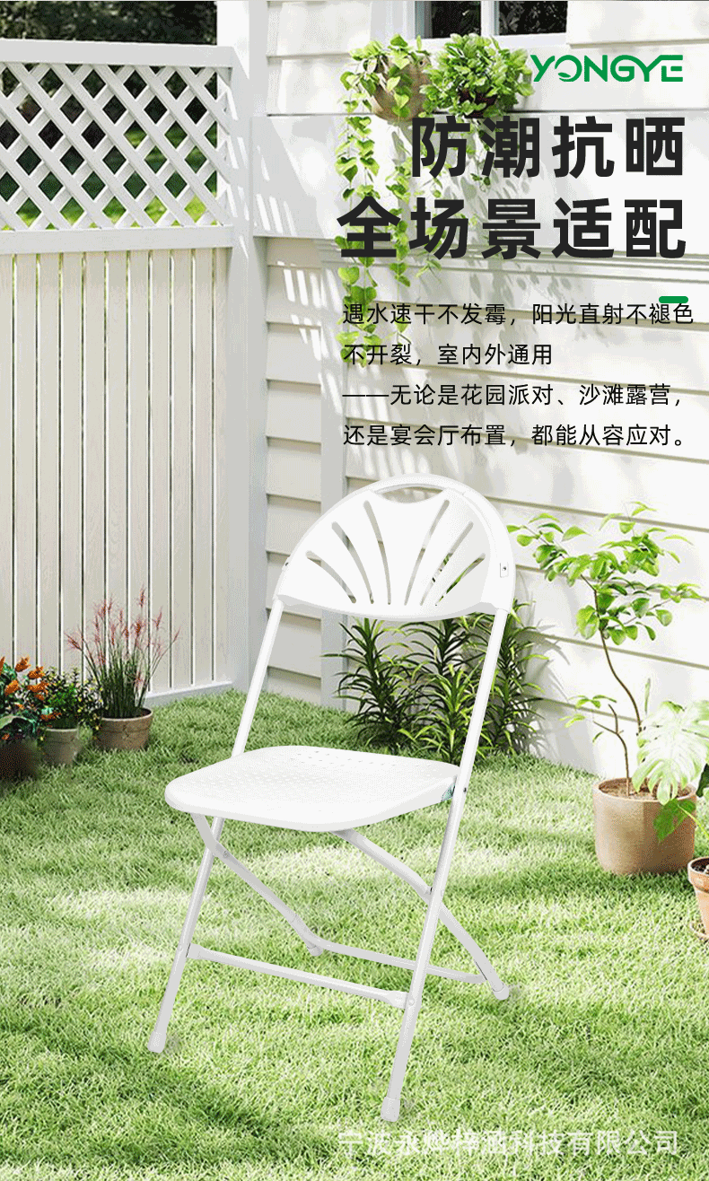 공장에서 제작된 휴대용 야외 잔디밭 웨딩 의자, 상업용 경량 내구성 팬형 등받이, 구멍이 있는 좌석판, 플라스틱 접이식 의자