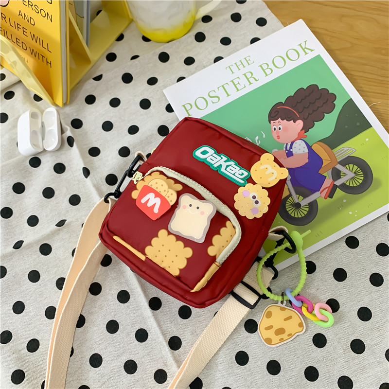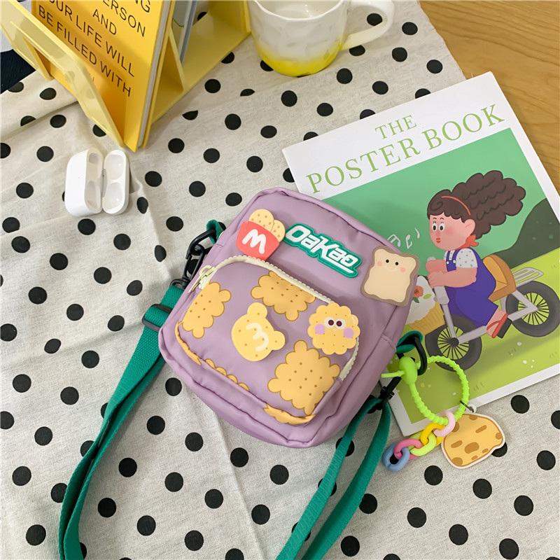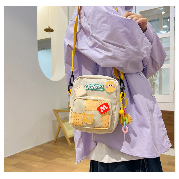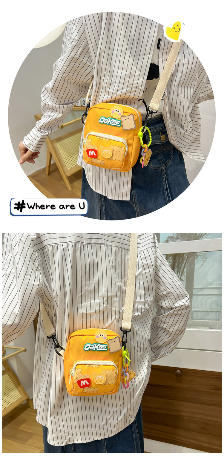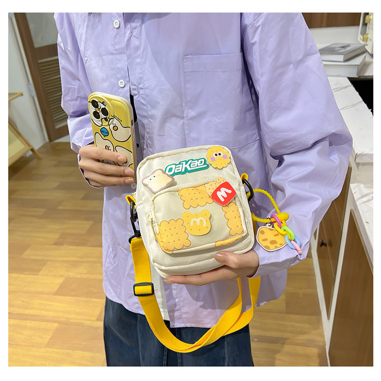 새로운 귀여운 만화 전화 가방 일본 소녀 메신저 가방 2024 한국 스타일 신선한 미니 대비 컬러 숄더백스토어 가기