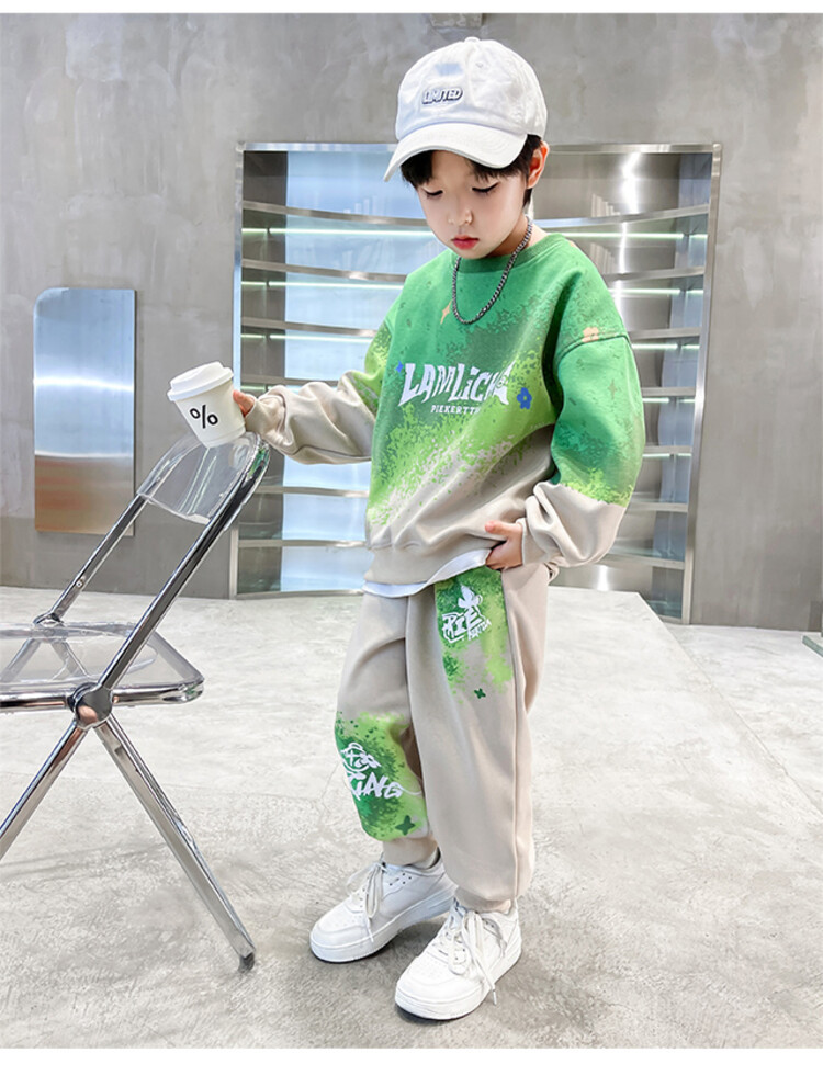 소년 세트 봄과 가을 2024 새로운 봄 스웨터 중형 및 대형 어린이 스포츠 캐주얼 유행 유행 유행 소년 옷