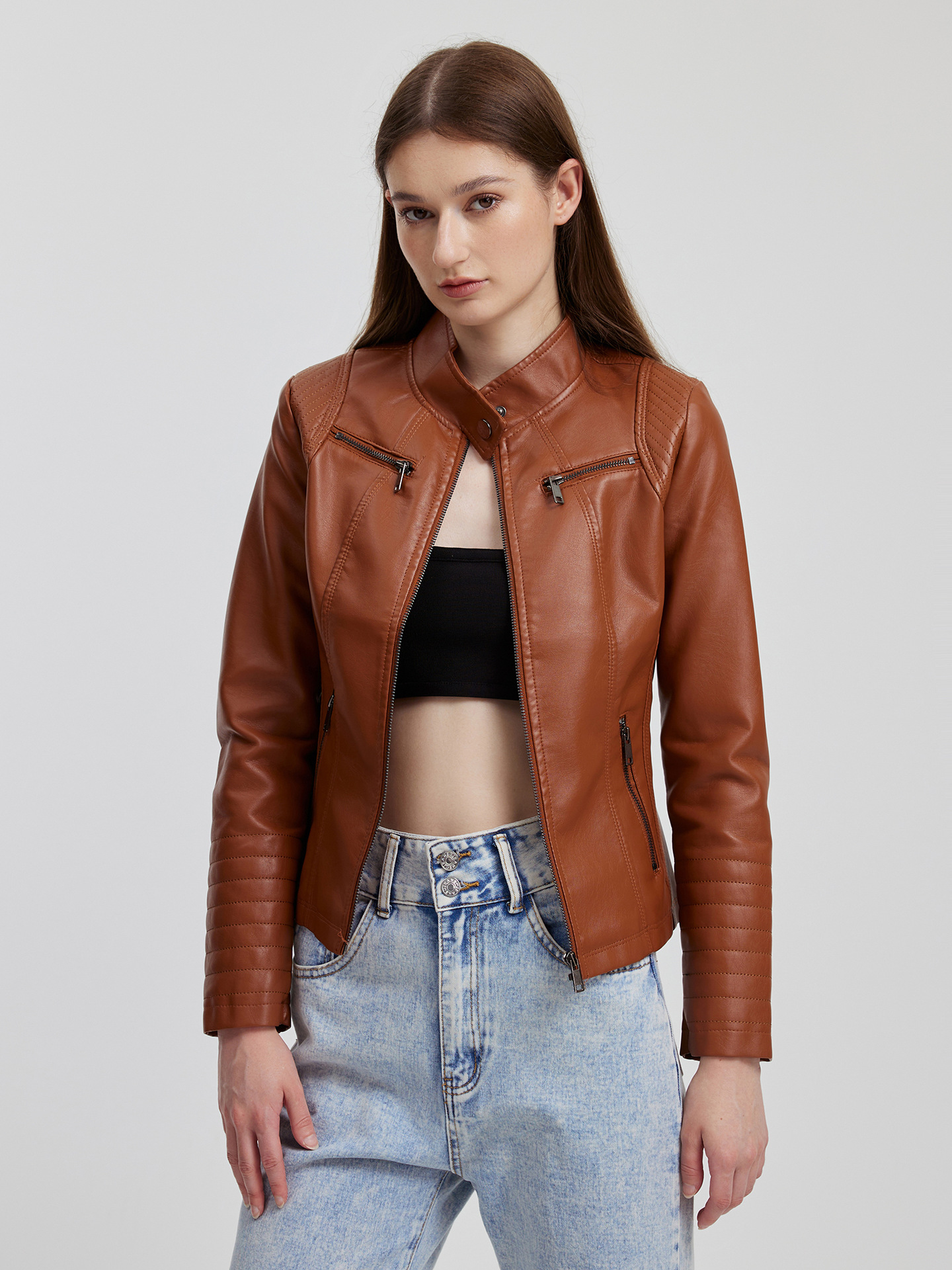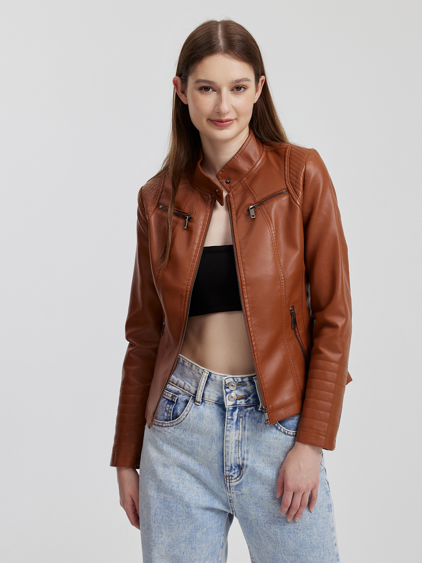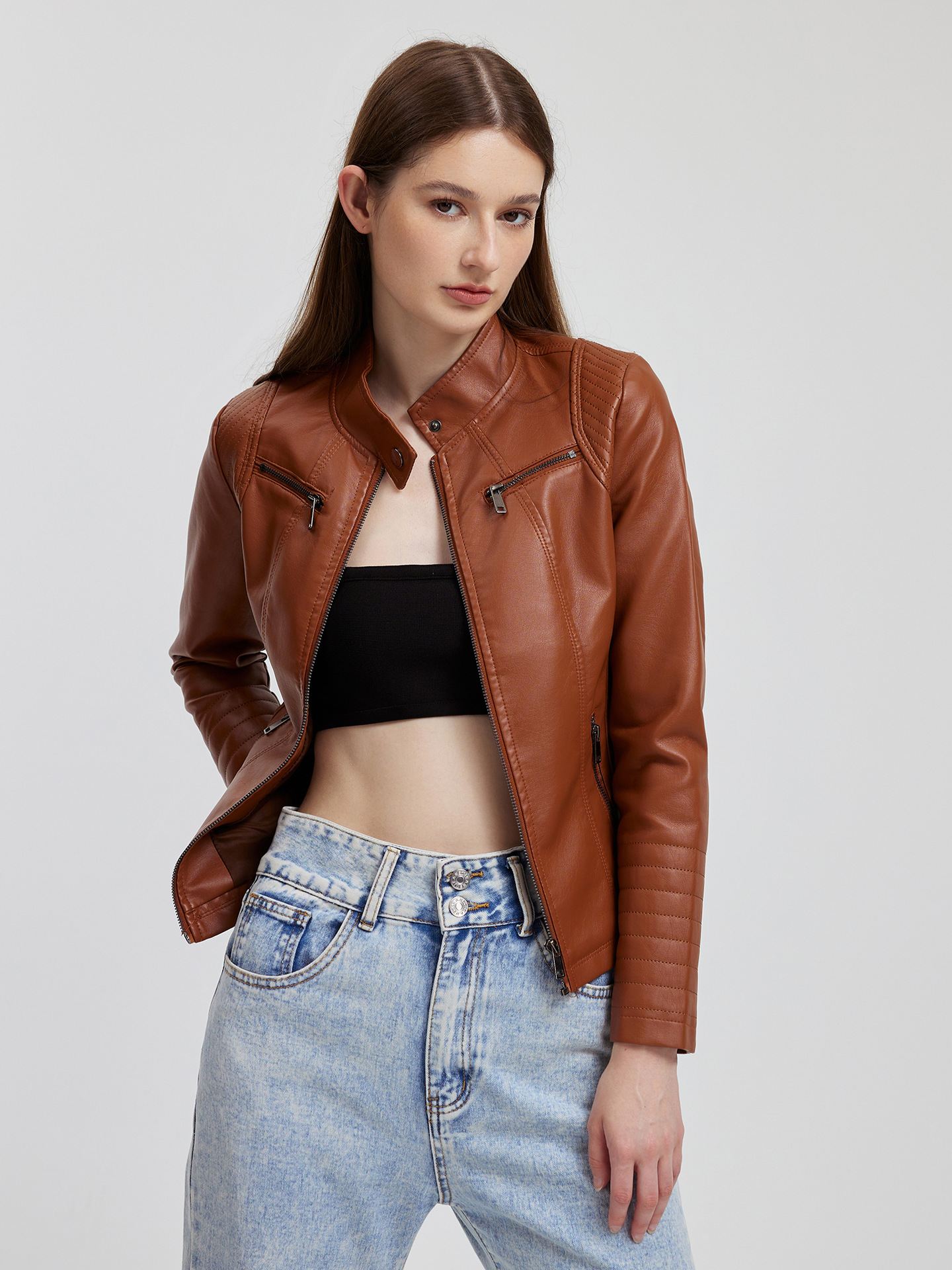 위시 오토바이 가죽 여성의 봄과 가을 칼라 재킷 코트 여성용 슬림 핏 캐주얼 아메리칸 스타일 레트로 얇은 작은 코트
