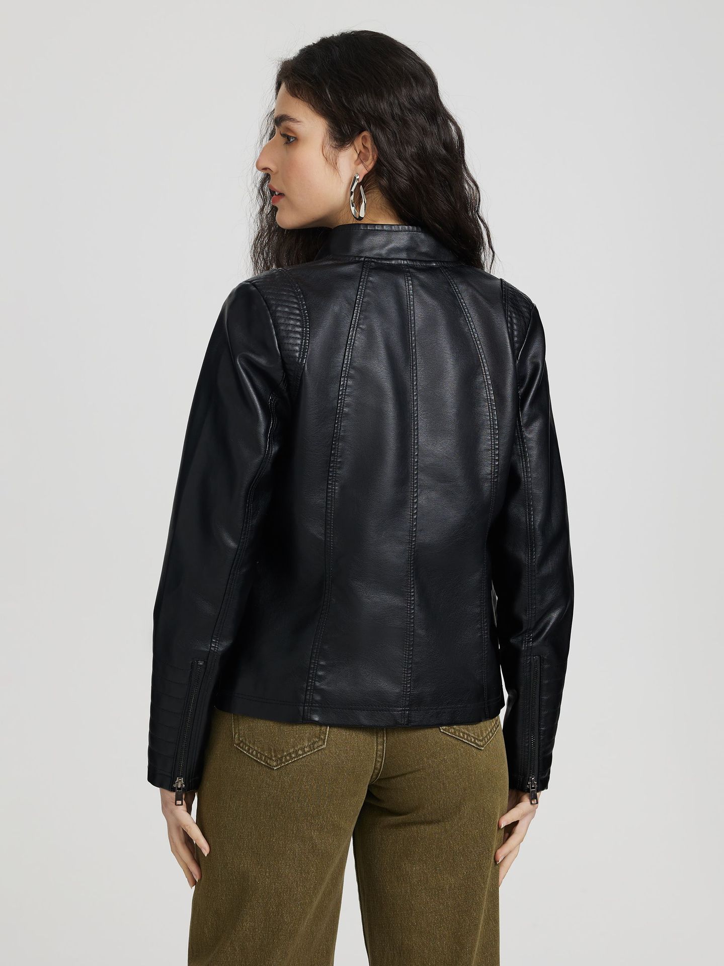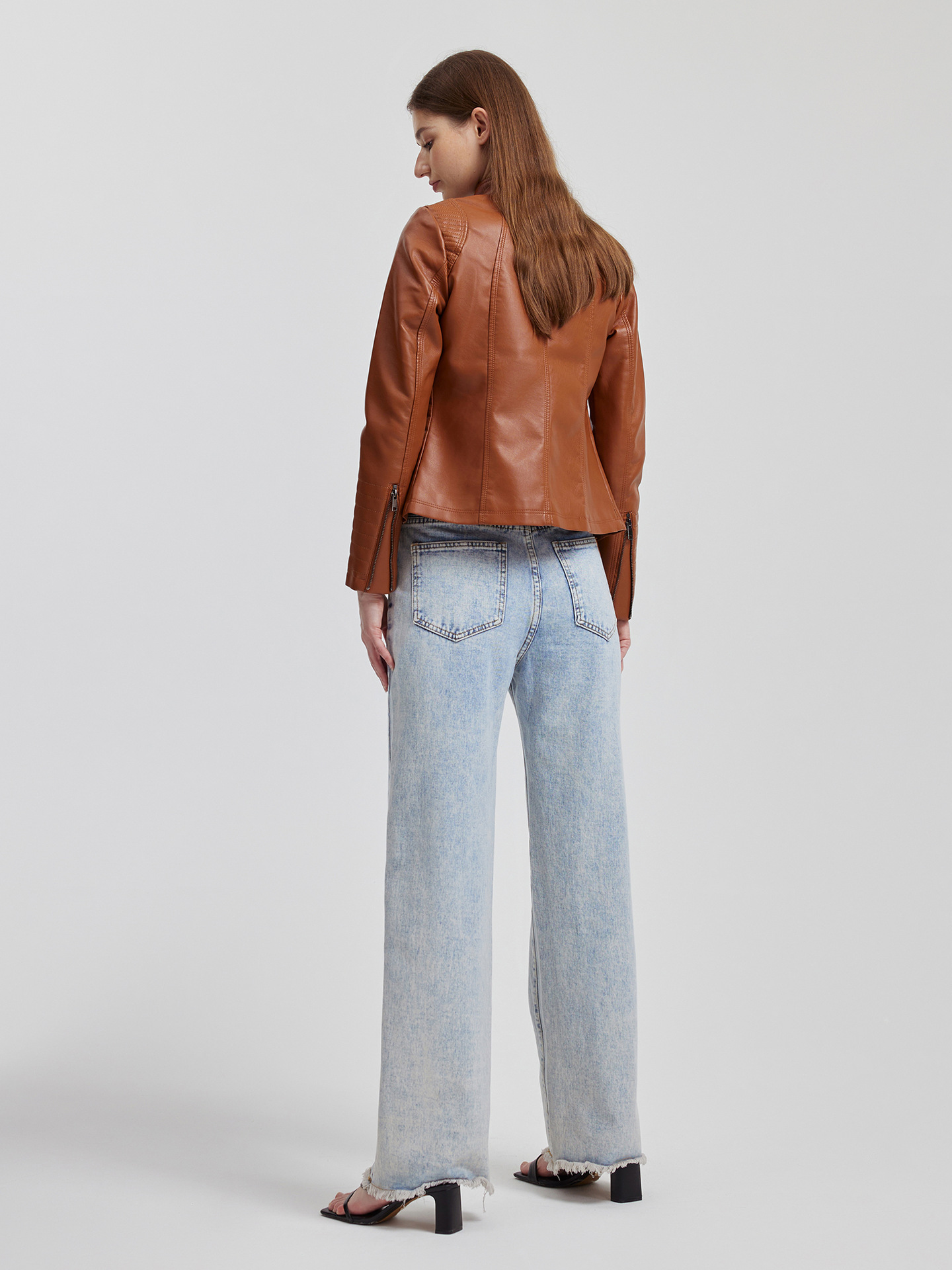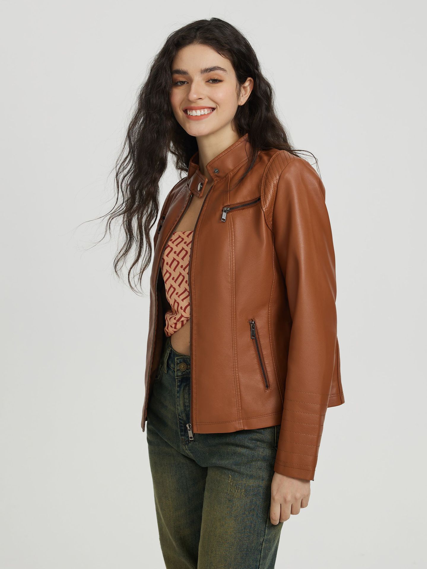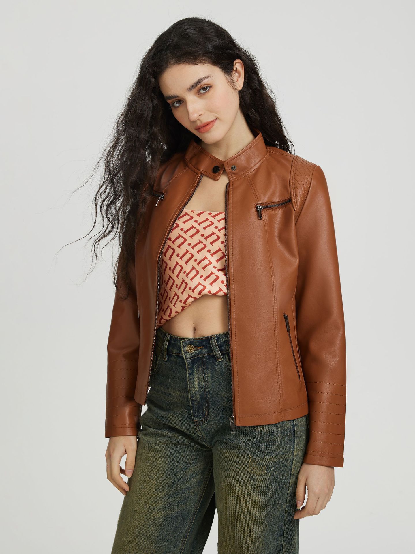 위시 오토바이 가죽 여성의 봄과 가을 칼라 재킷 코트 여성용 슬림 핏 캐주얼 아메리칸 스타일 레트로 얇은 작은 코트
