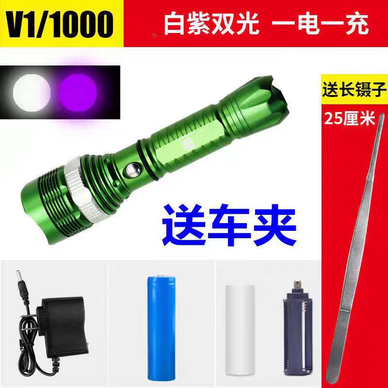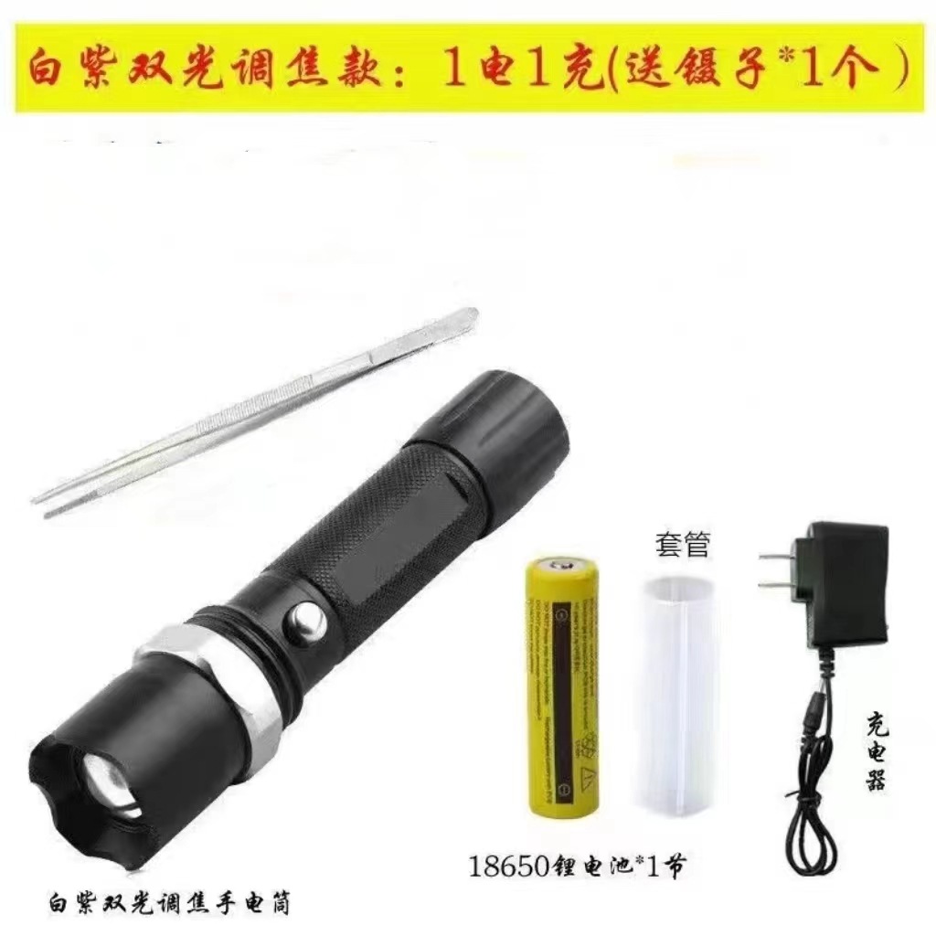 흰색 보라색 이중 광원 보라색 빛 돈 탐지기 전갈 빛 손전등 강한 빛 다기능 줌 충전 슈퍼 밝은 가정용 조명스토어 가기