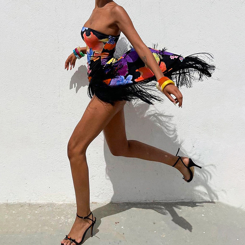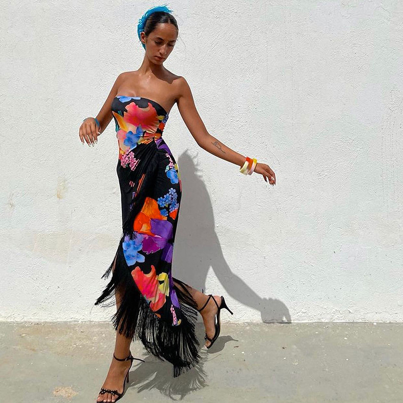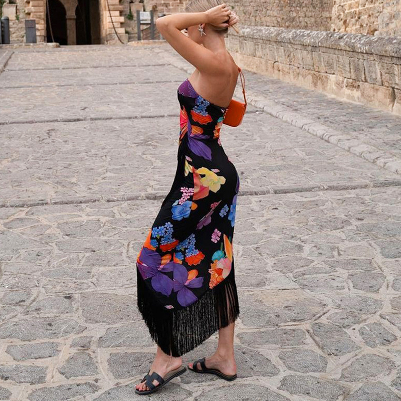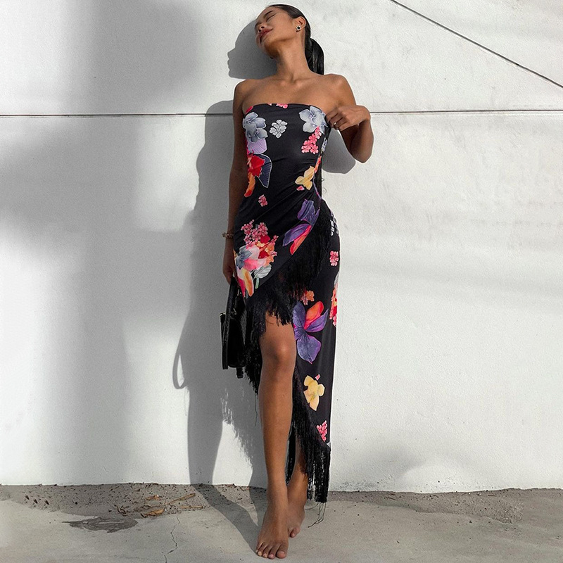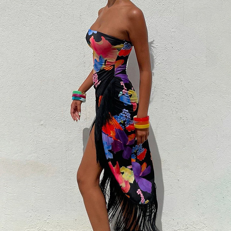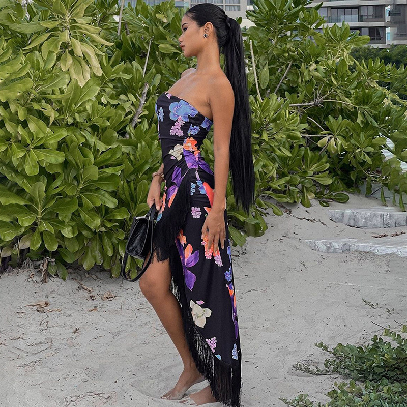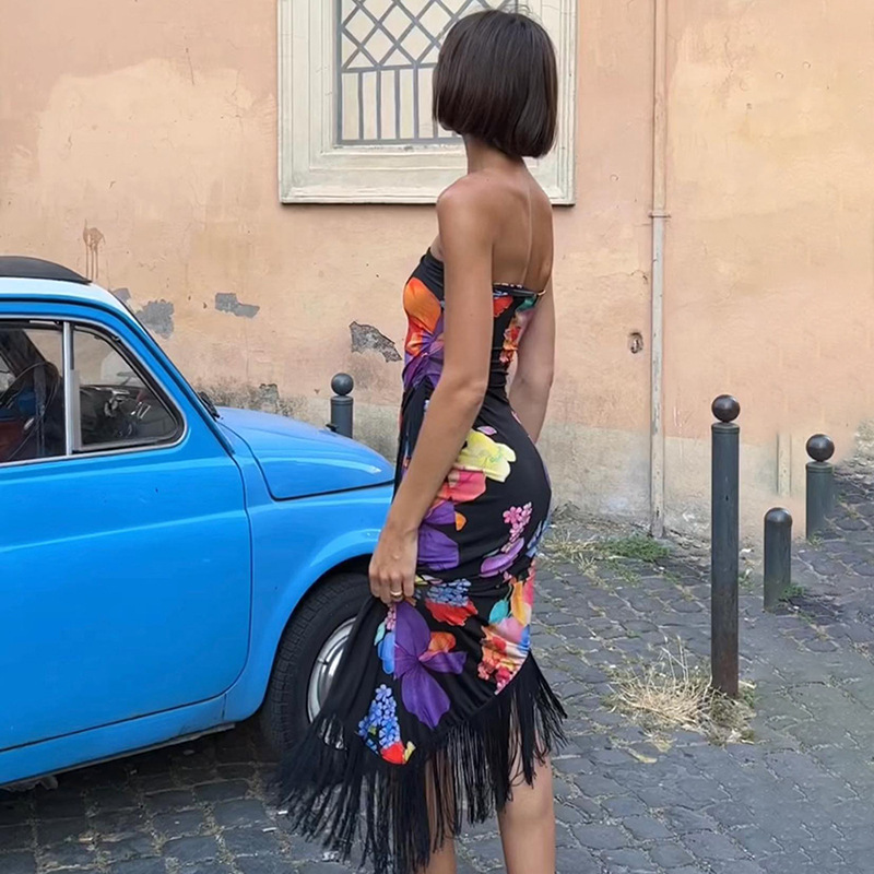 국경 간 대외 무역 유럽과 미국 여성 의류 2024 여름 아마존 민소매 슬림 섹시한 프린트 술 튜브 탑 원피스