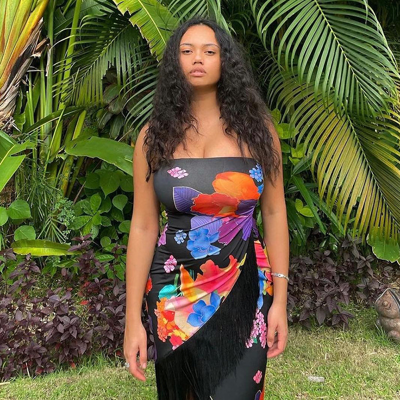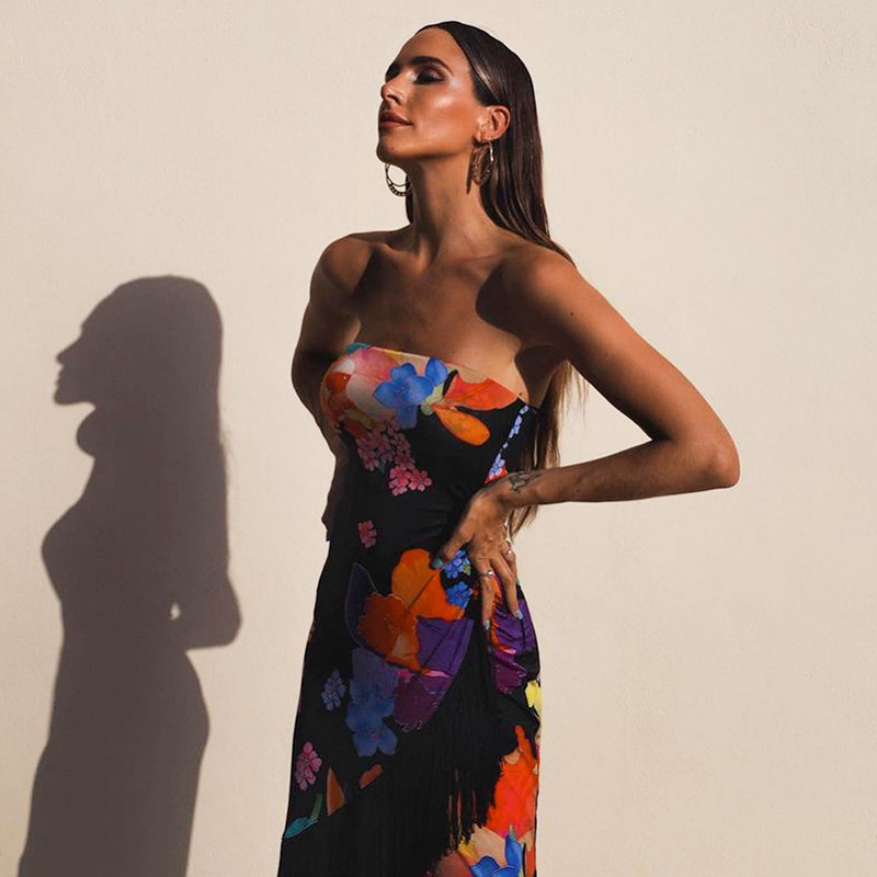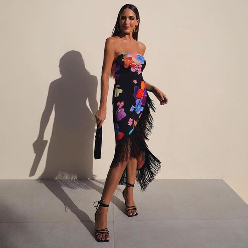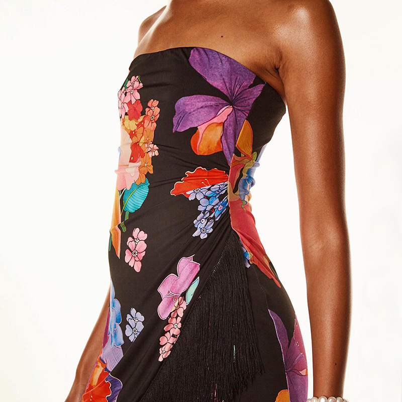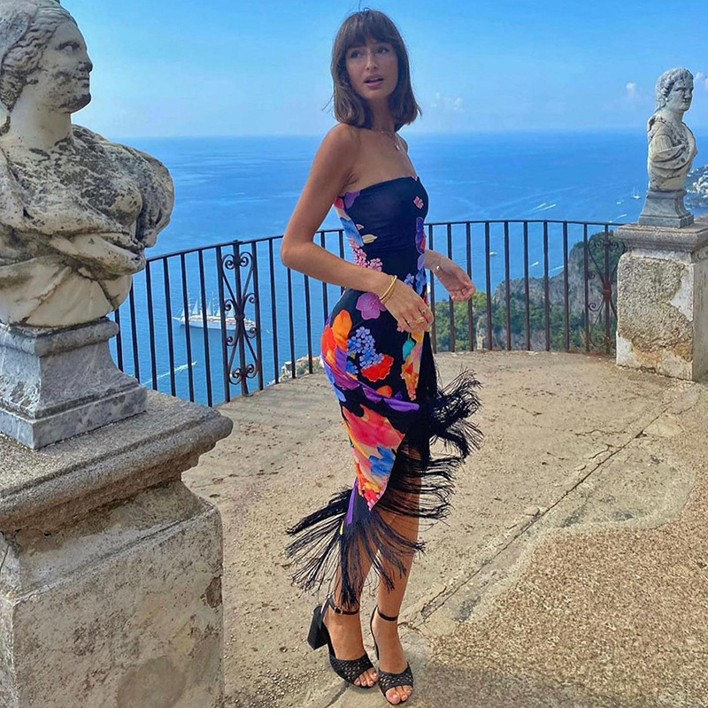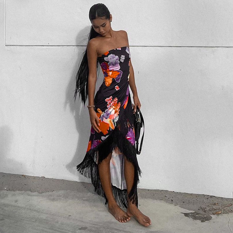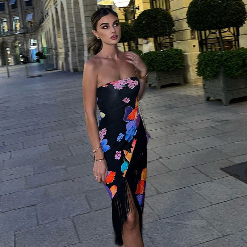 국경 간 대외 무역 유럽과 미국 여성 의류 2024 여름 아마존 민소매 슬림 섹시한 프린트 술 튜브 탑 원피스