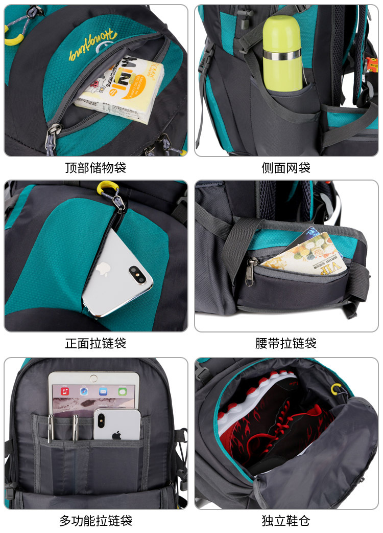 등산 가방 대용량 야외 여행 하이킹 배낭 남성과 여성의 동일한 다기능 부담 감소 캠핑 배낭 도매