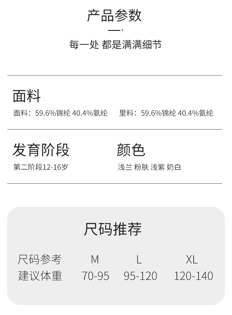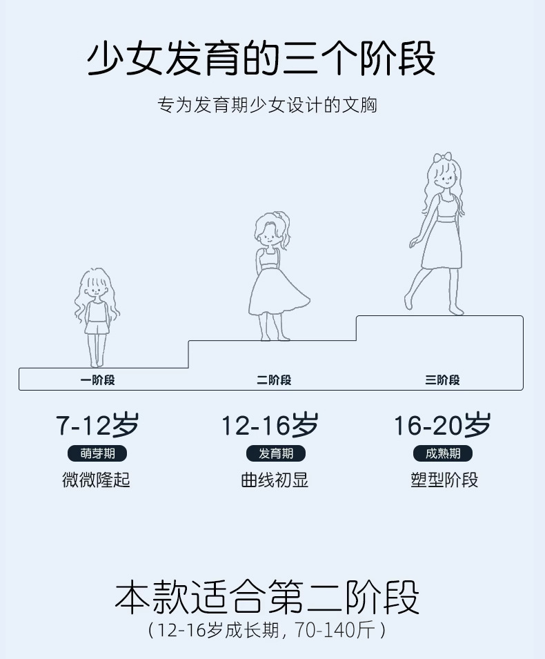 여아 발달기 속옷 12-16세 중학생 고등학생 여아 무봉제 조끼 가볍고 통기성 좋음