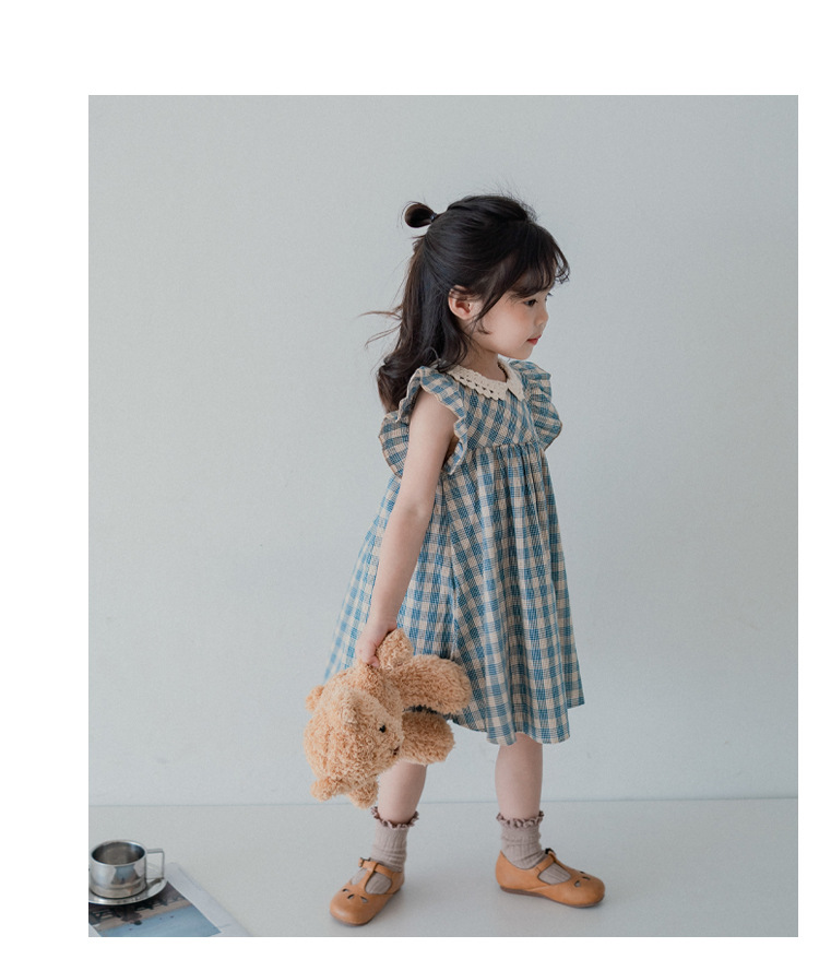 Jella 아동 의류 소녀 격자 무늬 드레스 2025 여름 새로운 스타일 한국 스타일 민소매 조끼 드레스 도매스토어 가기