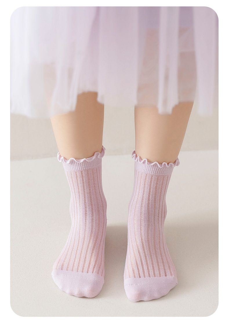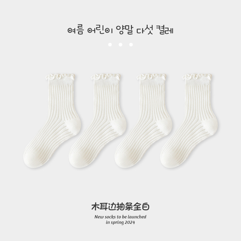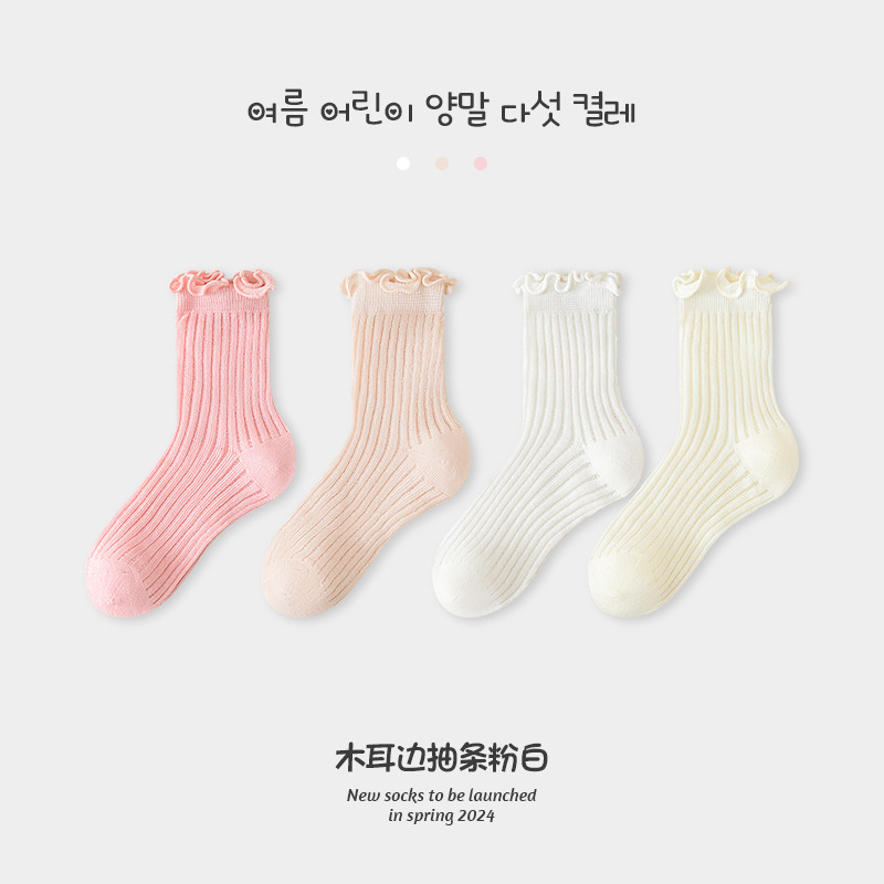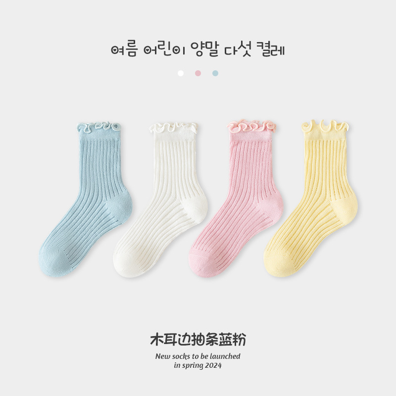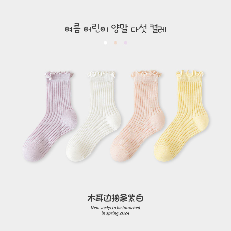 어린이 양말 도매 소녀 한국식 통기성 메쉬 양말 아기 소녀의 나무 귀 중반 송아지 뼈없는 카키 면 양말 패션