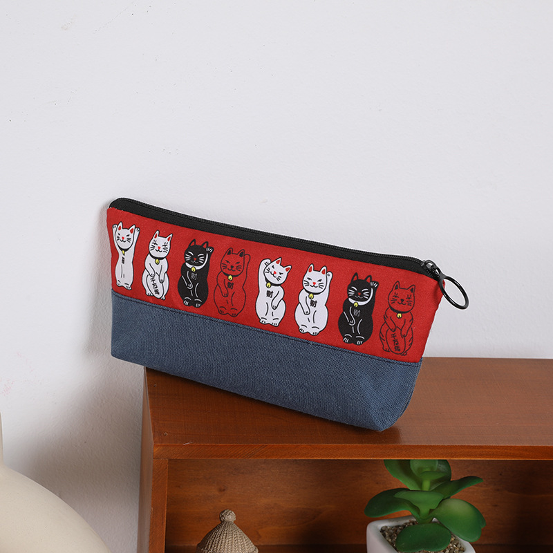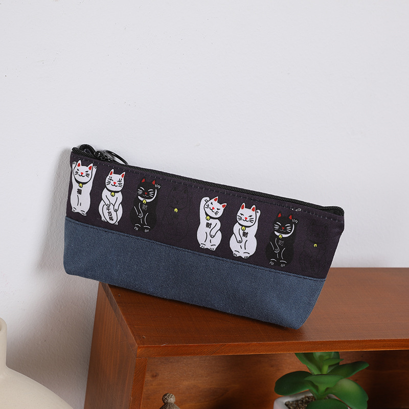 일본식 복고풍 행운의 고양이 창조적 인 성격 데님 연필 케이스 만화 학생 문구 보관 가방