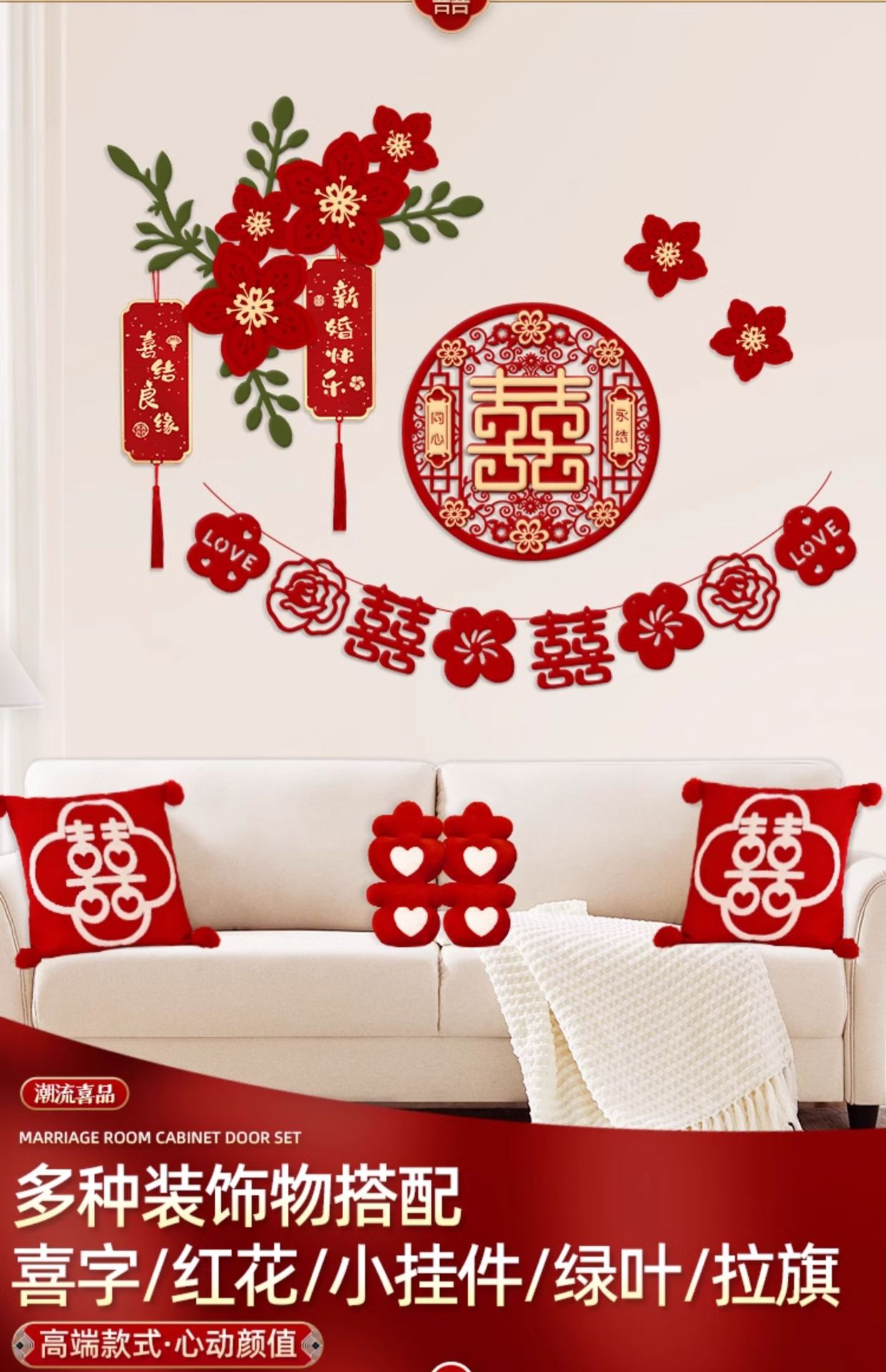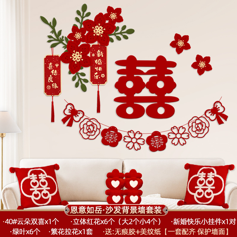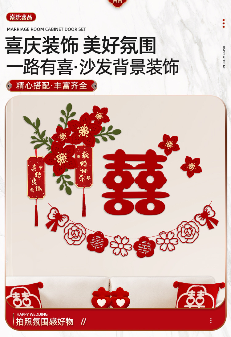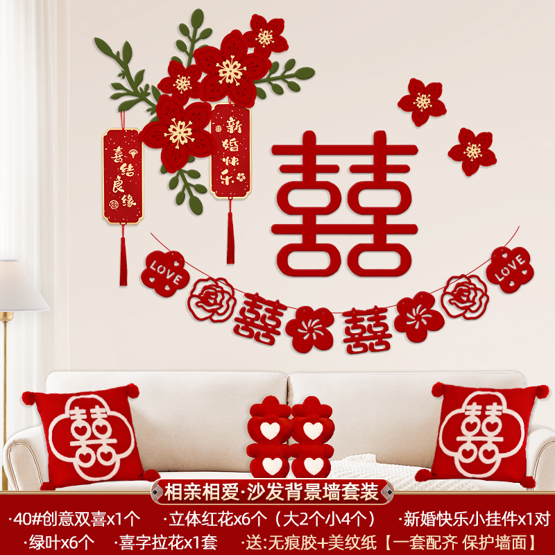 새 집 화환 결혼식 Xi 캐릭터 장식 남자 거실 TV 배경 벽 여성 광장 세트 스타일 웨딩 룸 레이아웃