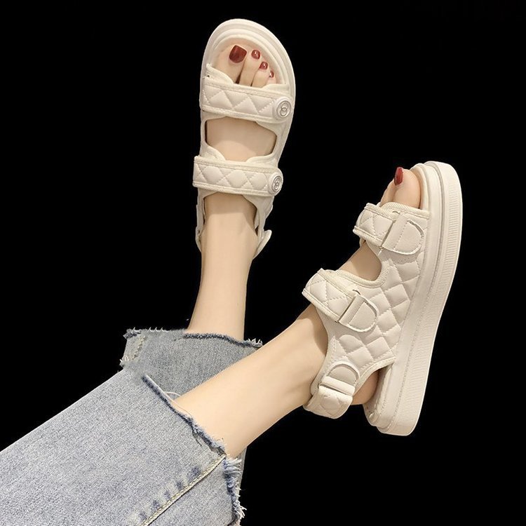 2024 봄 새로운 도착 샌들 여성 유행 외부는 피곤하지 않은 발 라운드 헤드 벨크로 비치 신발 여성 학생 캐주얼 신발스토어 가기