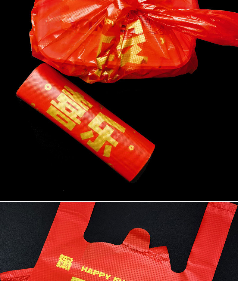 빨간 비닐 봉투 웨딩 백 알코올 및 담배 선물 선박 가방 축제 새해 휴대용 포장 테이크 아웃 포장 가방