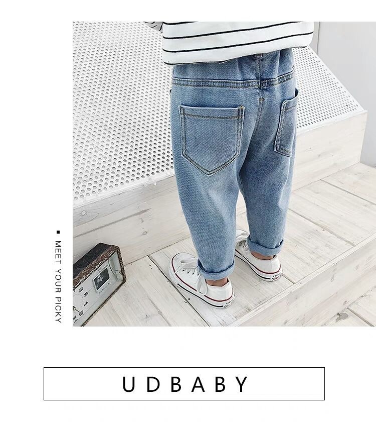 아동복 어린이 바지 봄과 가을 아기 스트레치 청바지 소년 서양식 소녀 올 매치 느슨한 바지 한국 패션스토어 가기