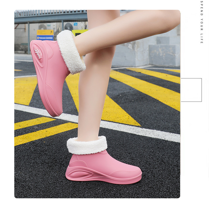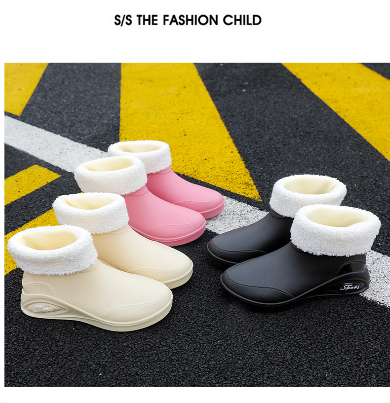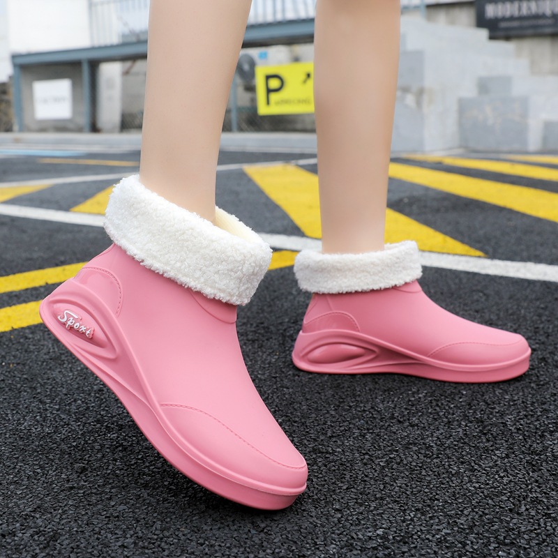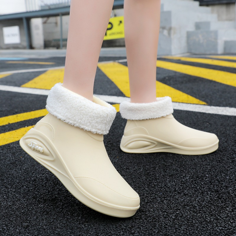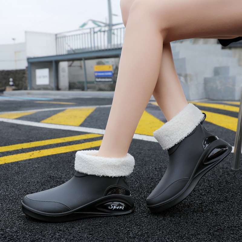 국경 간 패션 장화 여성의 미끄럼 방지 송아지 물 신발 워터 부츠 짧은 장화 기모 통합 주방 신발 고무 신발 패션스토어 가기