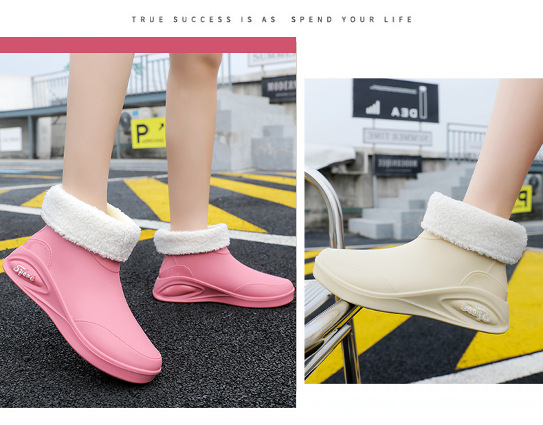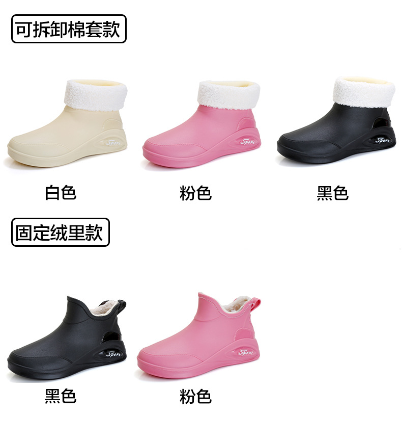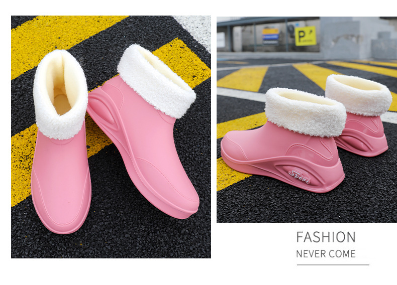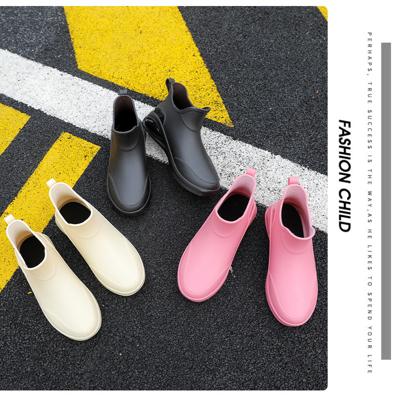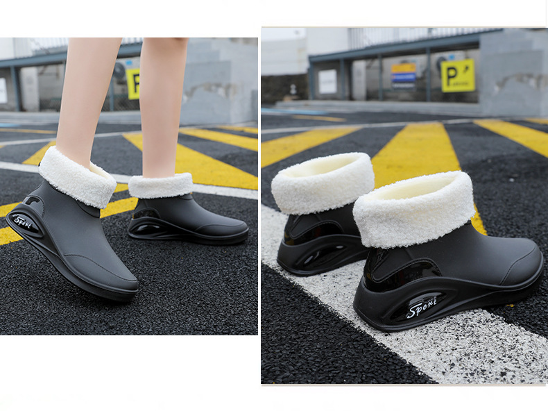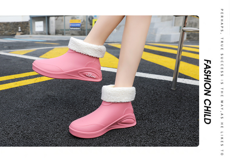 국경 간 패션 장화 여성의 미끄럼 방지 송아지 물 신발 워터 부츠 짧은 장화 기모 통합 주방 신발 고무 신발 패션스토어 가기