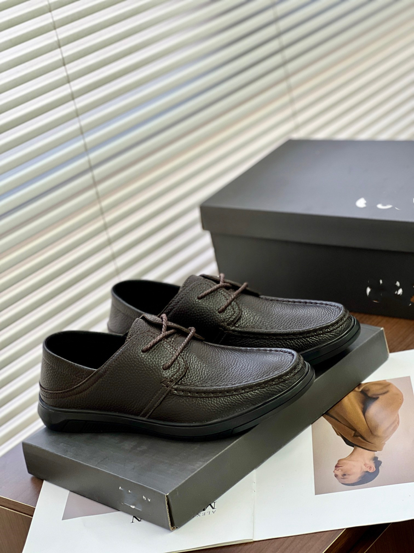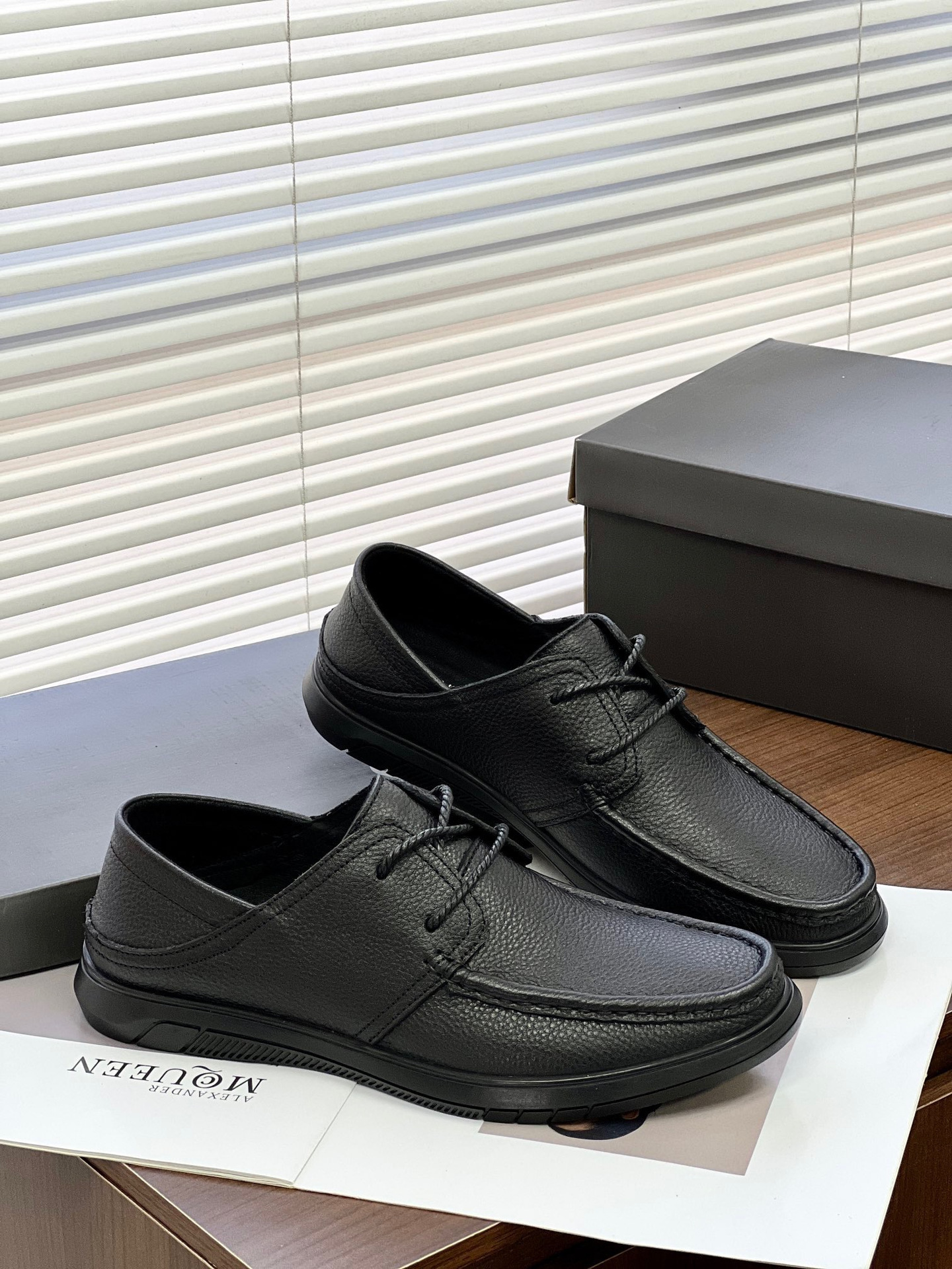 厂家批发外贸原单真皮休闲皮鞋莞产高品系带一脚蹬两穿舒适爸爸鞋