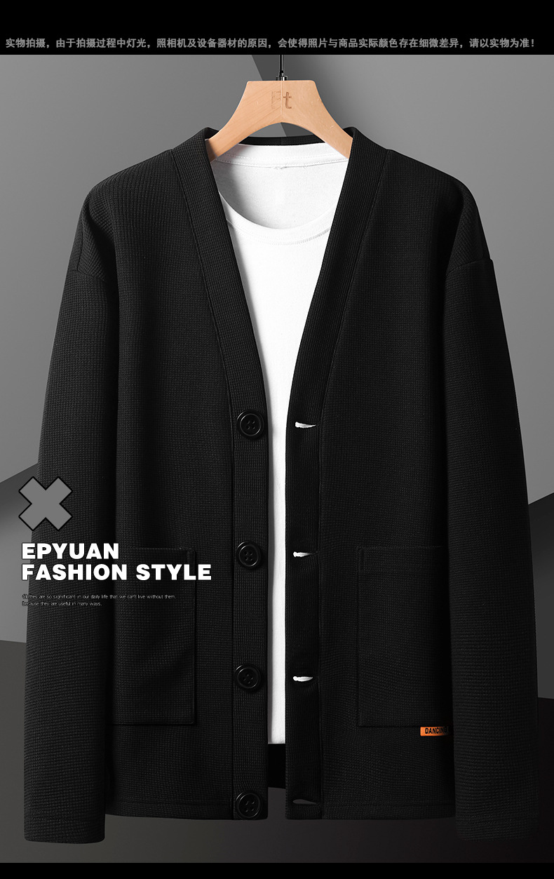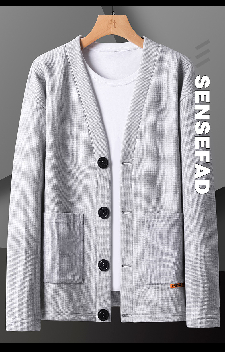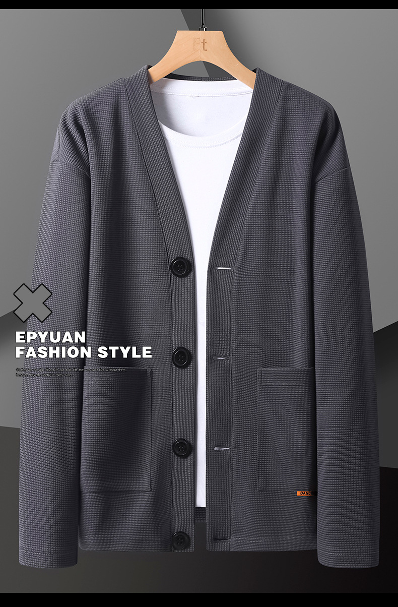 2233 와플 봄과 가을 새로운 패션 브랜드 싱글 브레스트 카디건 스웨터 남성용 스프링 탑 재킷 와플