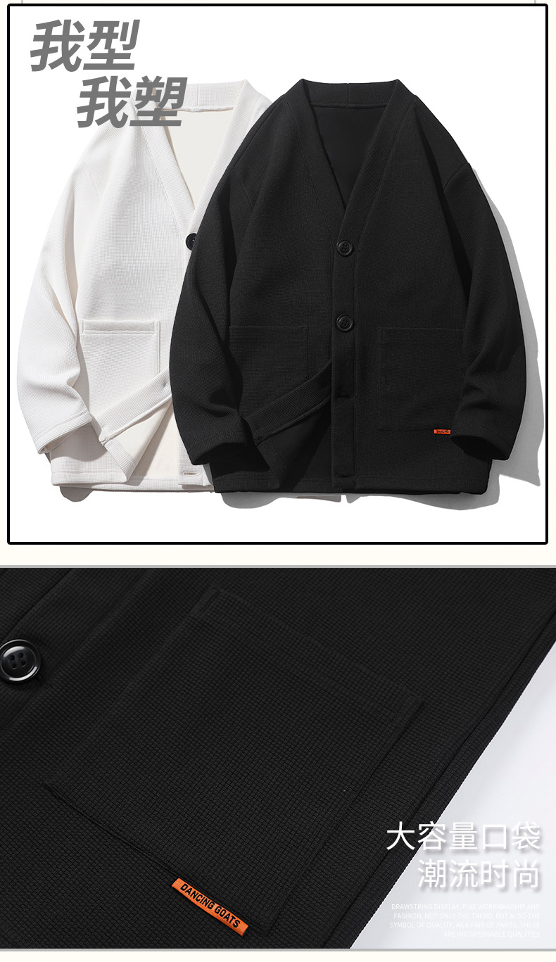 2233 와플 봄과 가을 새로운 패션 브랜드 싱글 브레스트 카디건 스웨터 남성용 스프링 탑 재킷 와플스토어 가기