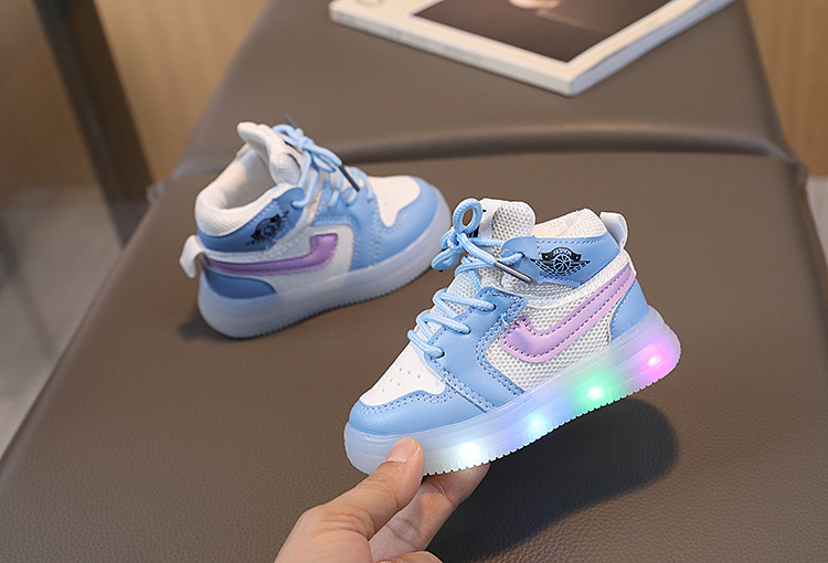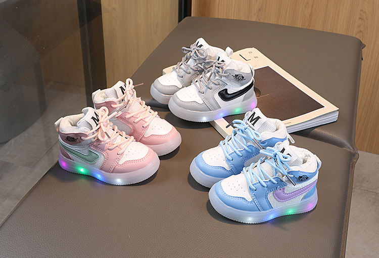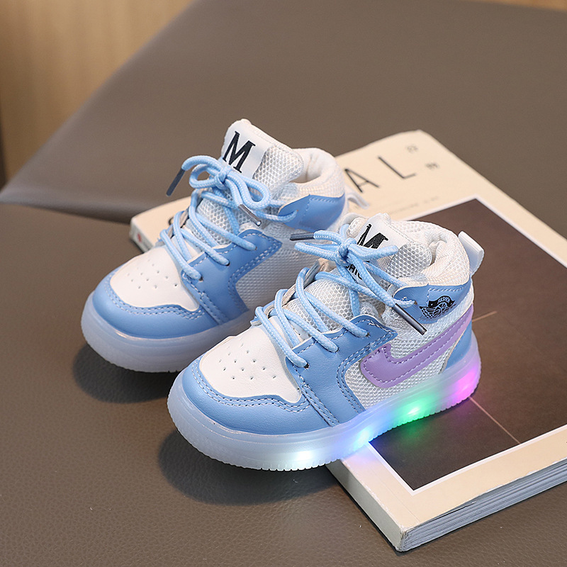 봄과 가을 어린이 보드 신발 최고급 소녀 메쉬 캐주얼 신발 소년 운동화 1-6 세 아기 LED 라이트 온 신발
