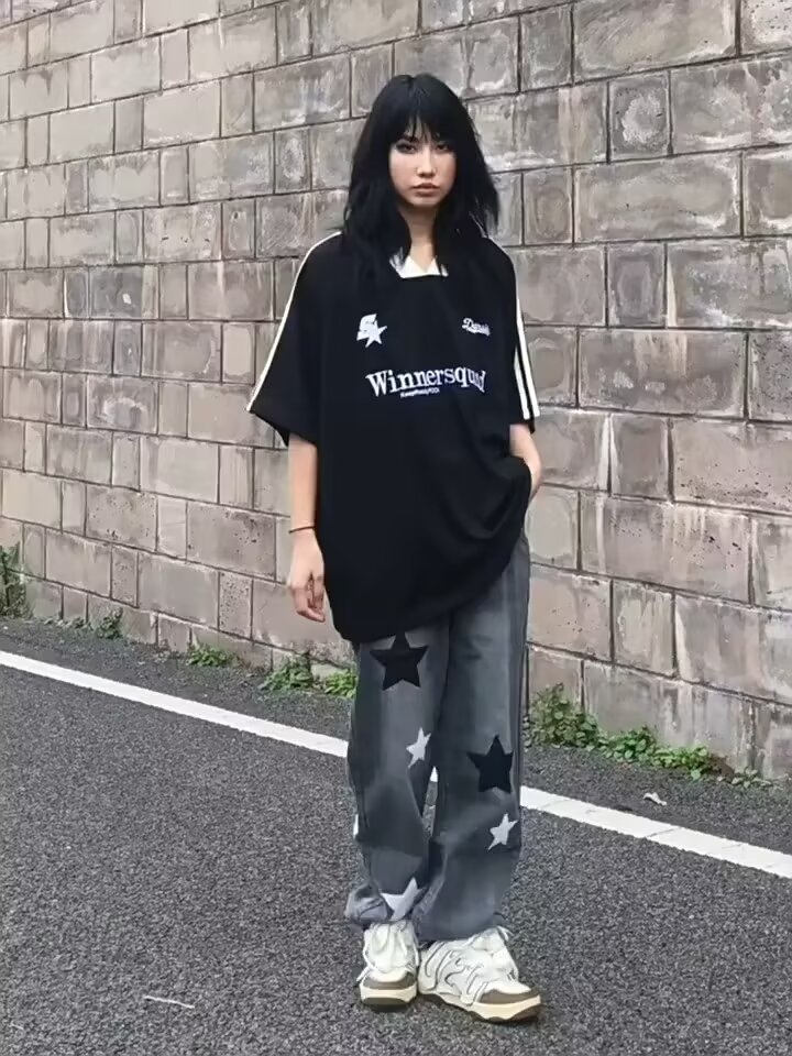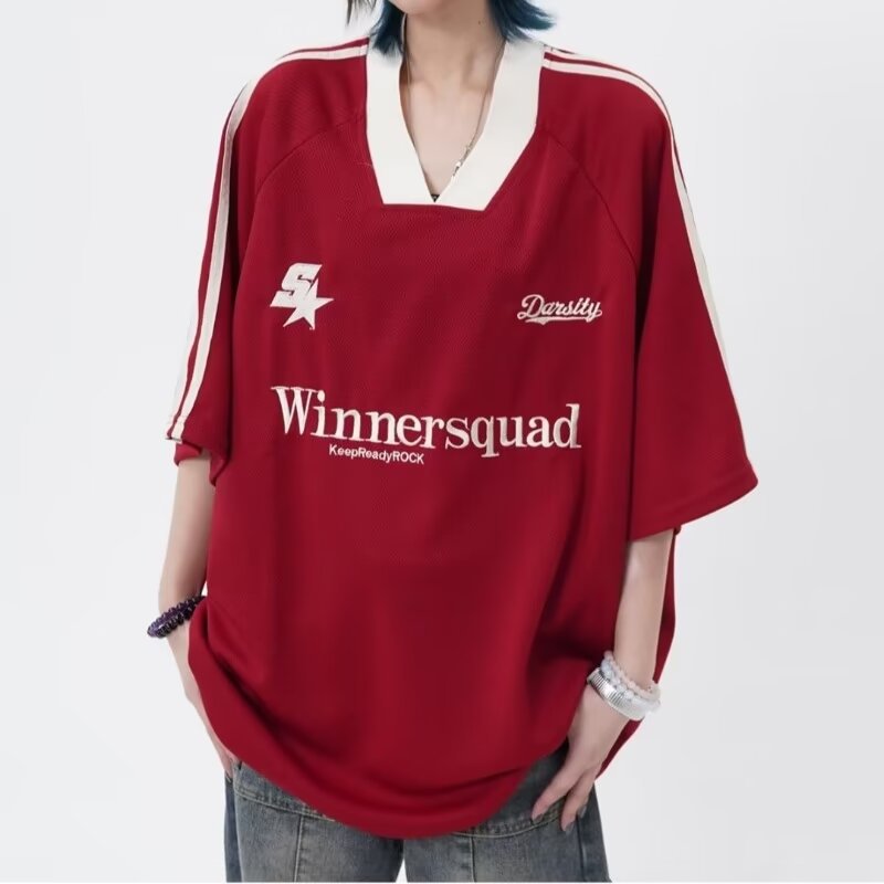 여름 대비 색상 스티칭 반팔 티셔츠 여성 대외 무역 패션 브랜드, 고감 오토바이 의류 루안 잘 생긴 반소매 밑바닥 셔츠 남성스토어 가기