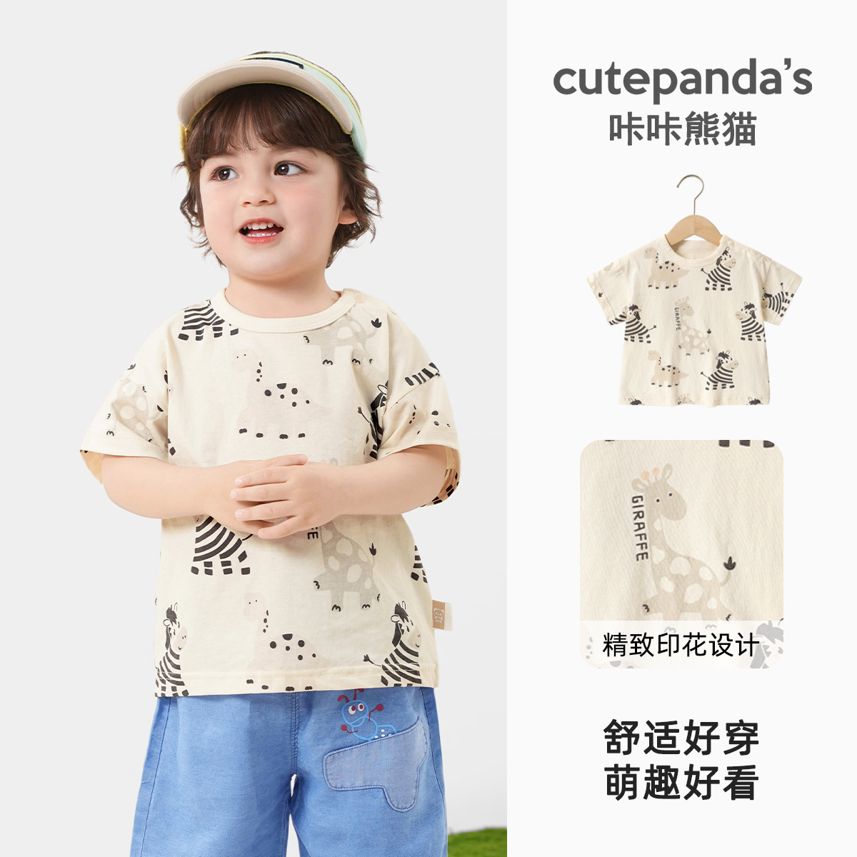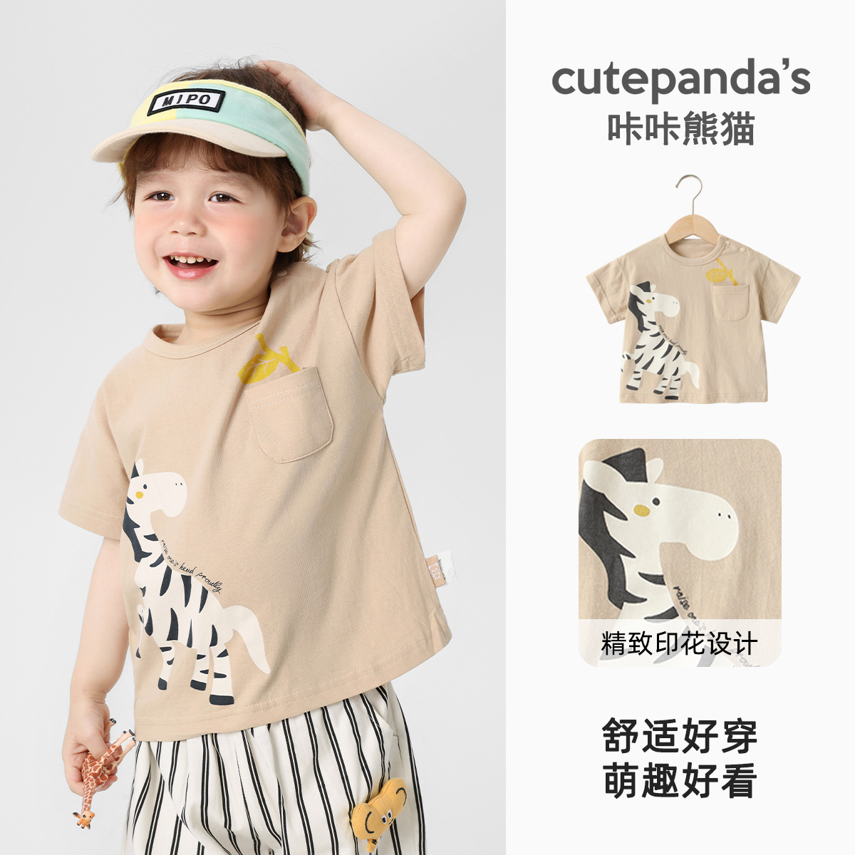 카카 팬더 베이비 캐주얼 퓨어 코튼 반팔 티셔츠 여름 의류 소년 소녀 아기 아동복 여름 탑스토어 가기