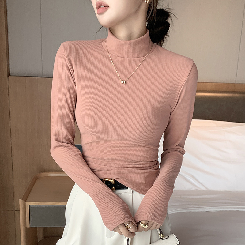 넓은 줄무늬 단색 반 터틀넥 스웨터 여성 내부 바닥 셔츠 가을과 겨울 최고 새로운 다목적 슬림 스웨터