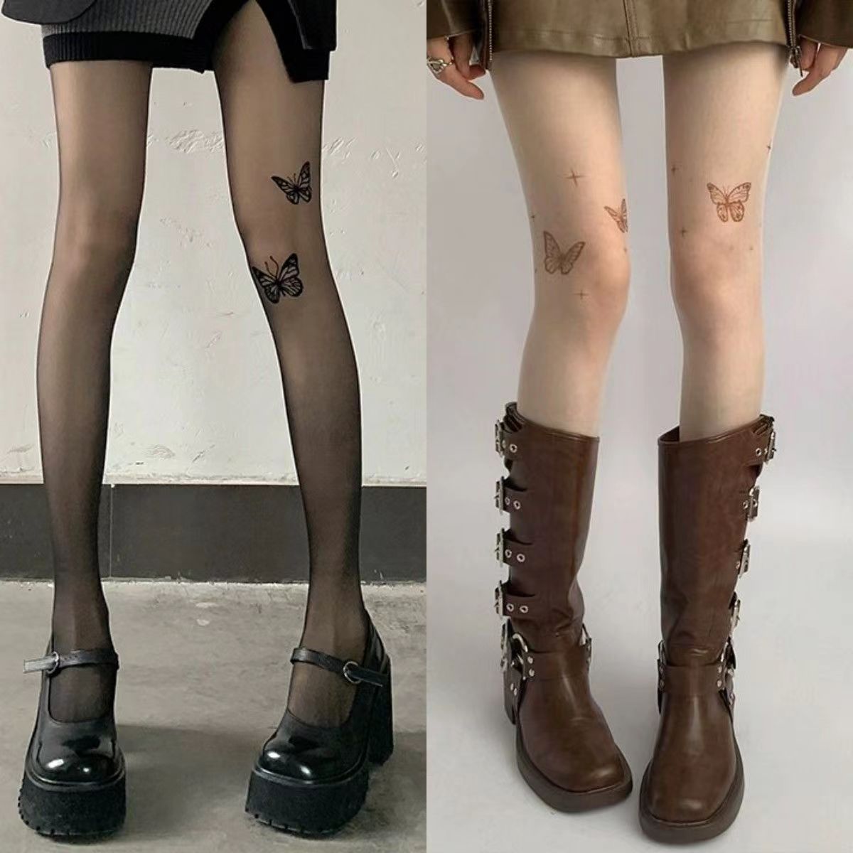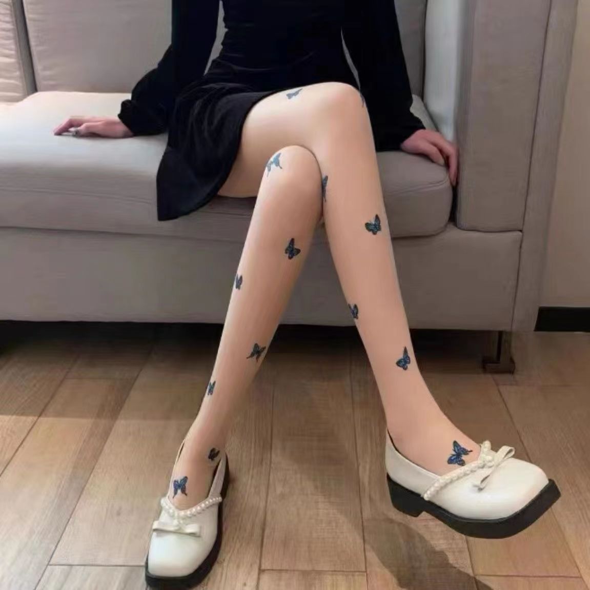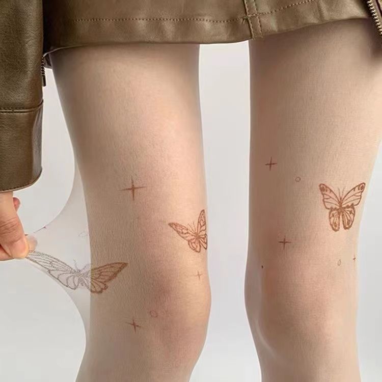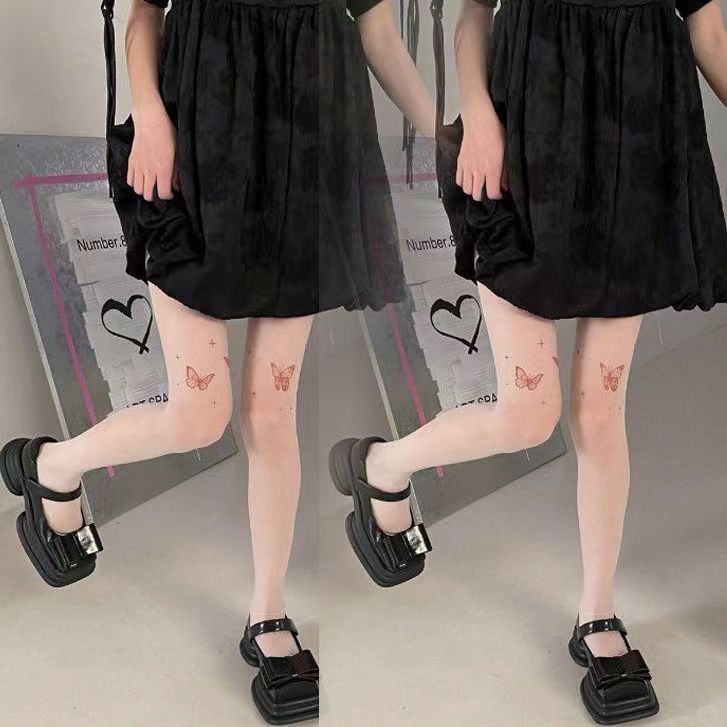 신상품 화이트 스타킹 순수한 매력 방지용 봄 가을용 블랙 나비 문신 프린트 팬티스타킹 쉐이핑스토어 가기