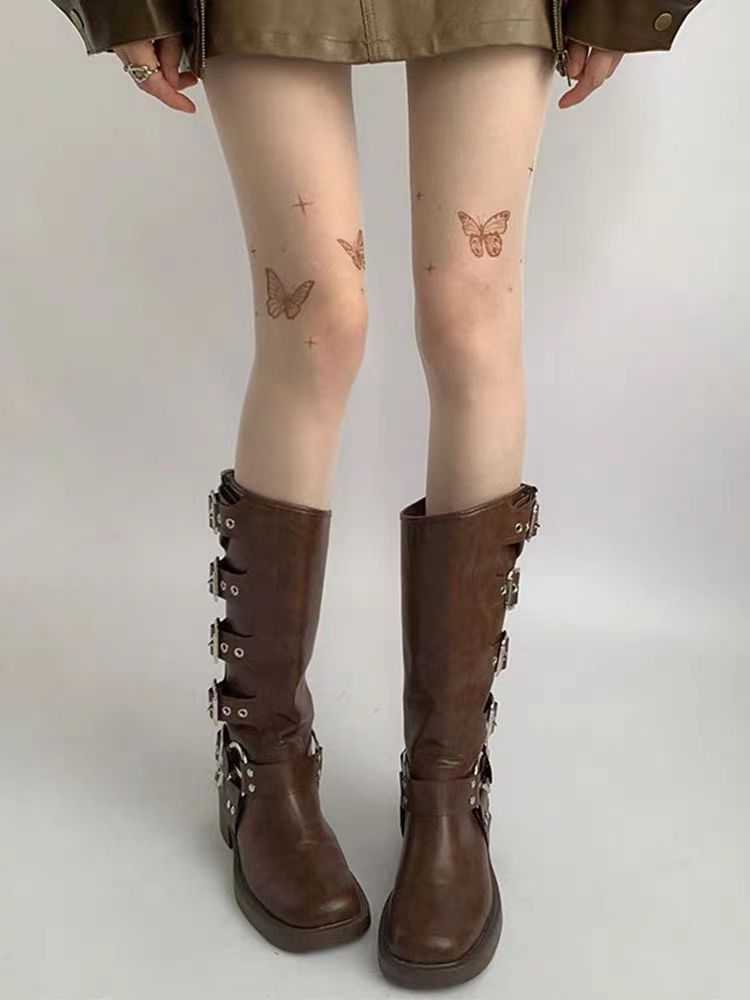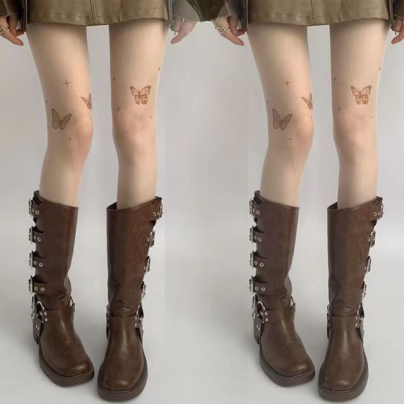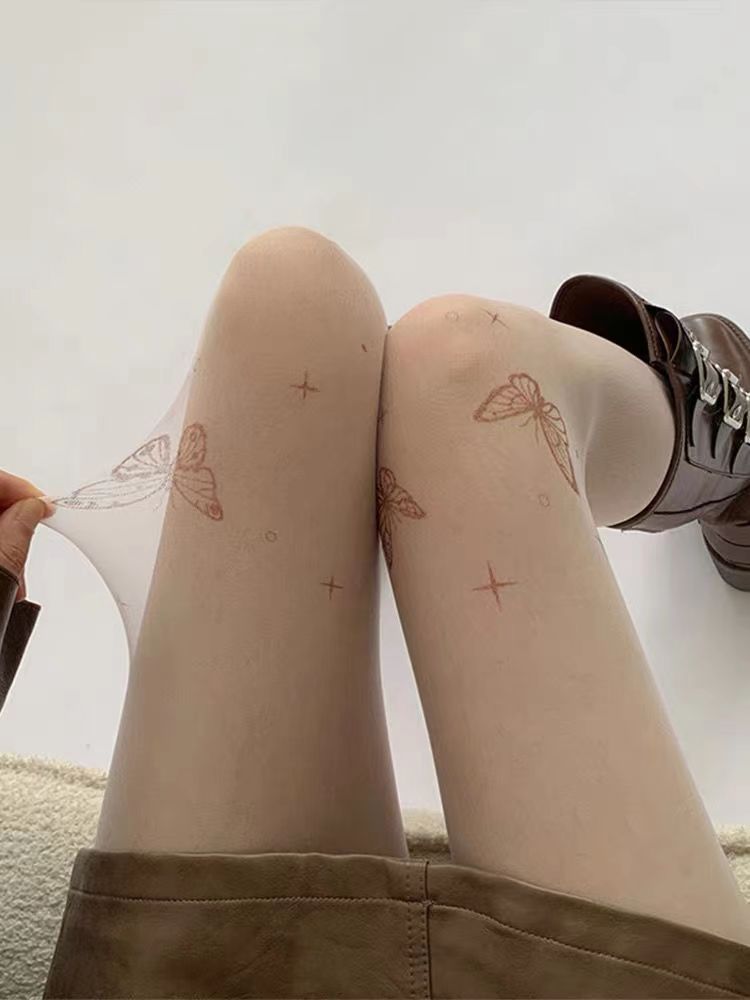 신상품 화이트 스타킹 순수한 매력 방지용 봄 가을용 블랙 나비 문신 프린트 팬티스타킹 쉐이핑