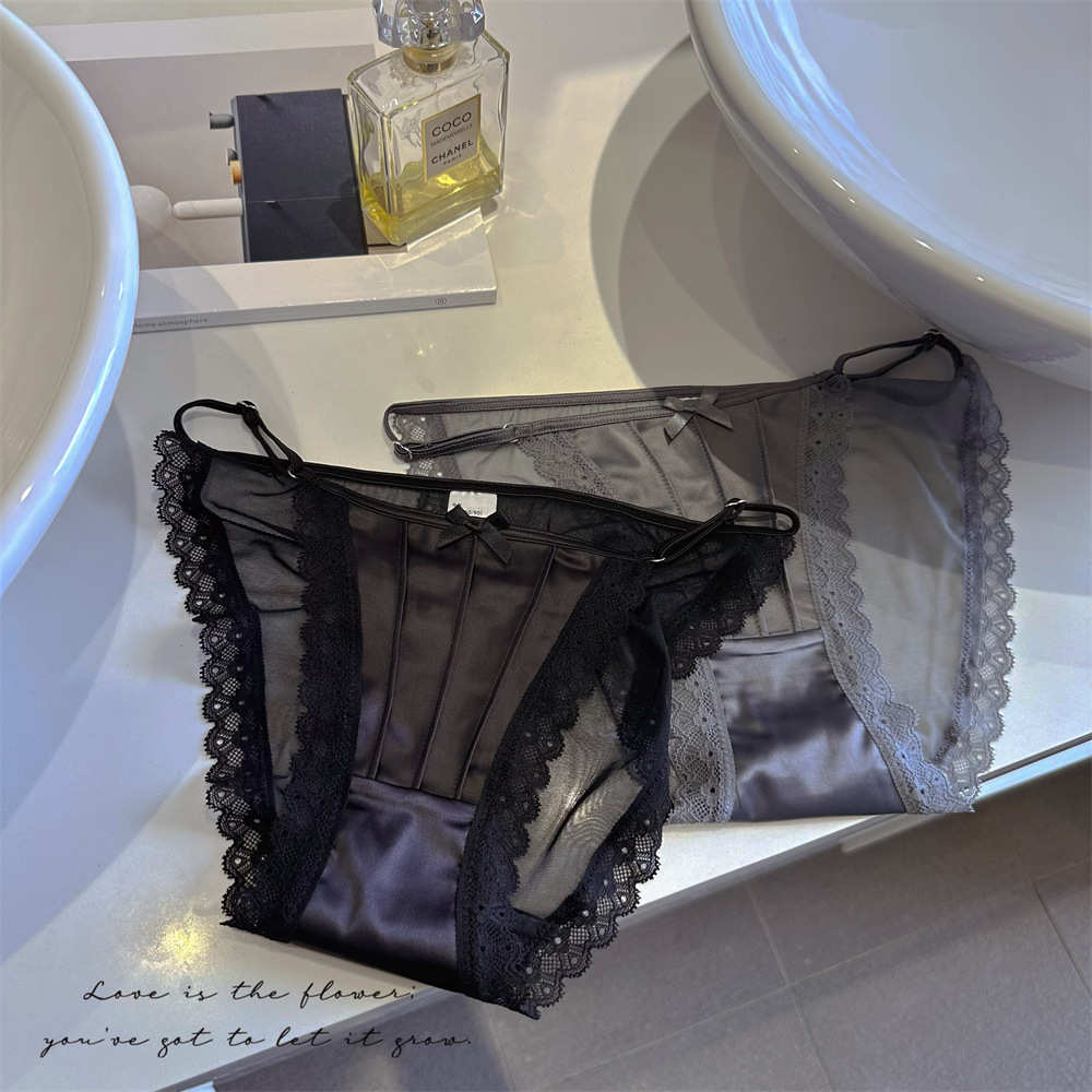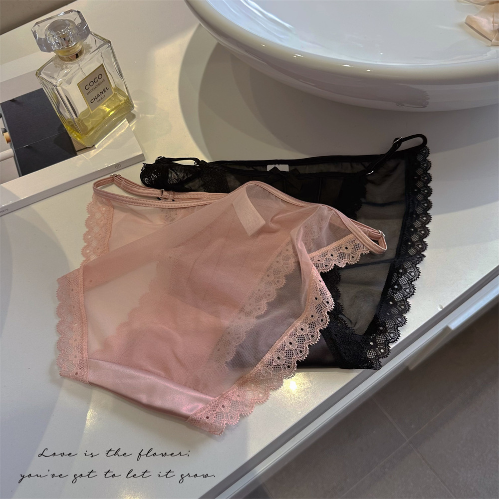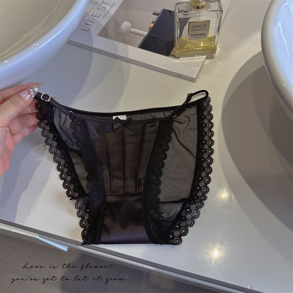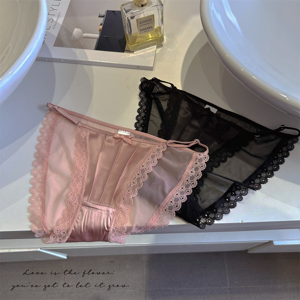 아이스 실크 새틴 순수한 욕망 스타일 섹시한 높은 포크 메쉬 레이스 업 원활한 낮은 허리 삼각형 속옷 소녀 청소년 얇은 통기성