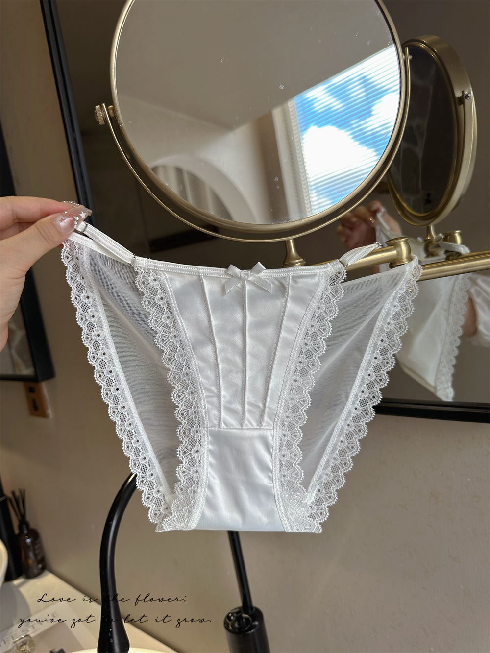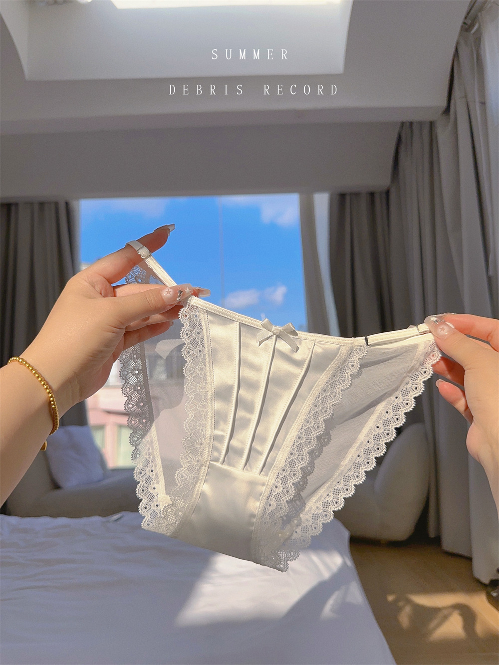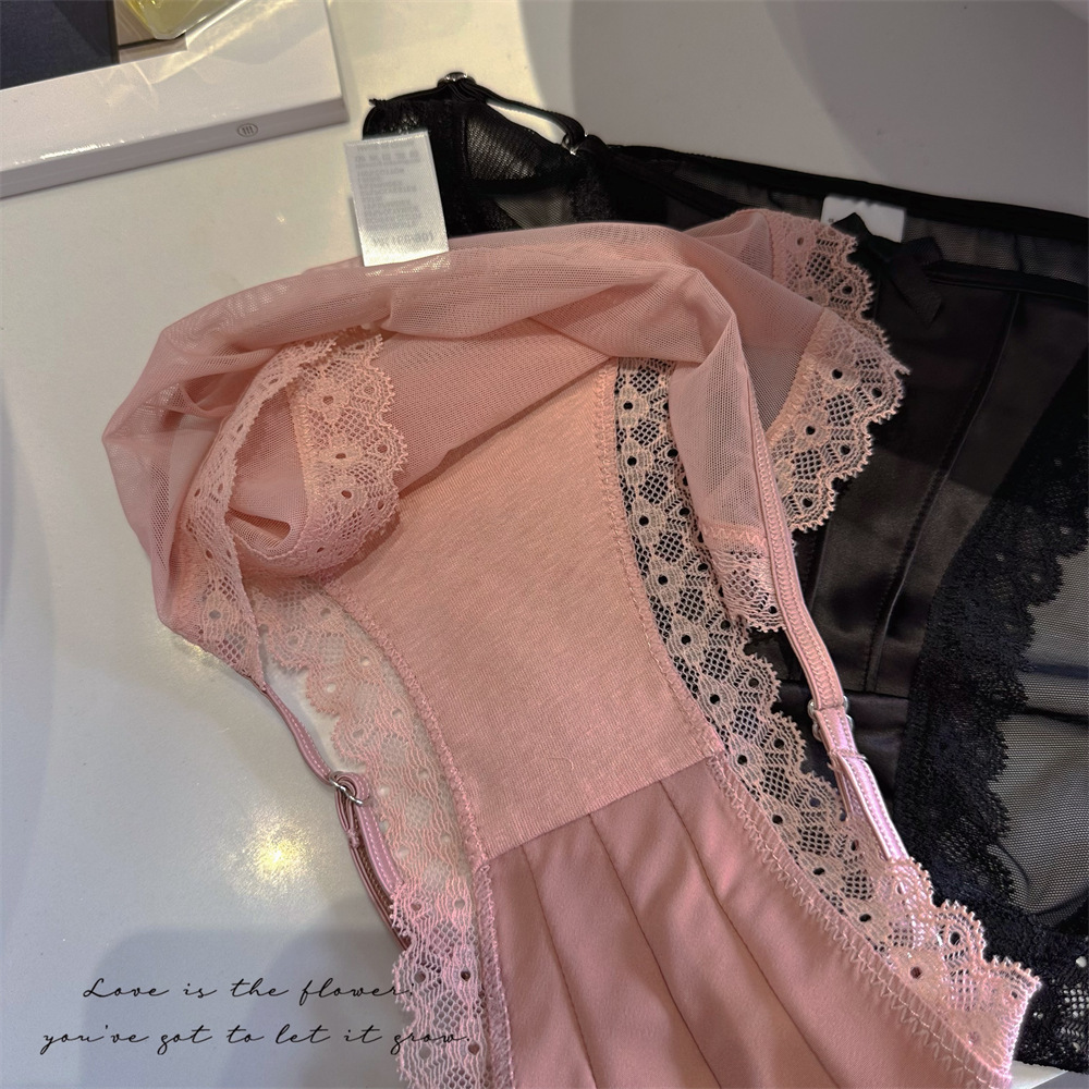 아이스 실크 새틴 순수한 욕망 스타일 섹시한 높은 포크 메쉬 레이스 업 원활한 낮은 허리 삼각형 속옷 소녀 청소년 얇은 통기성
