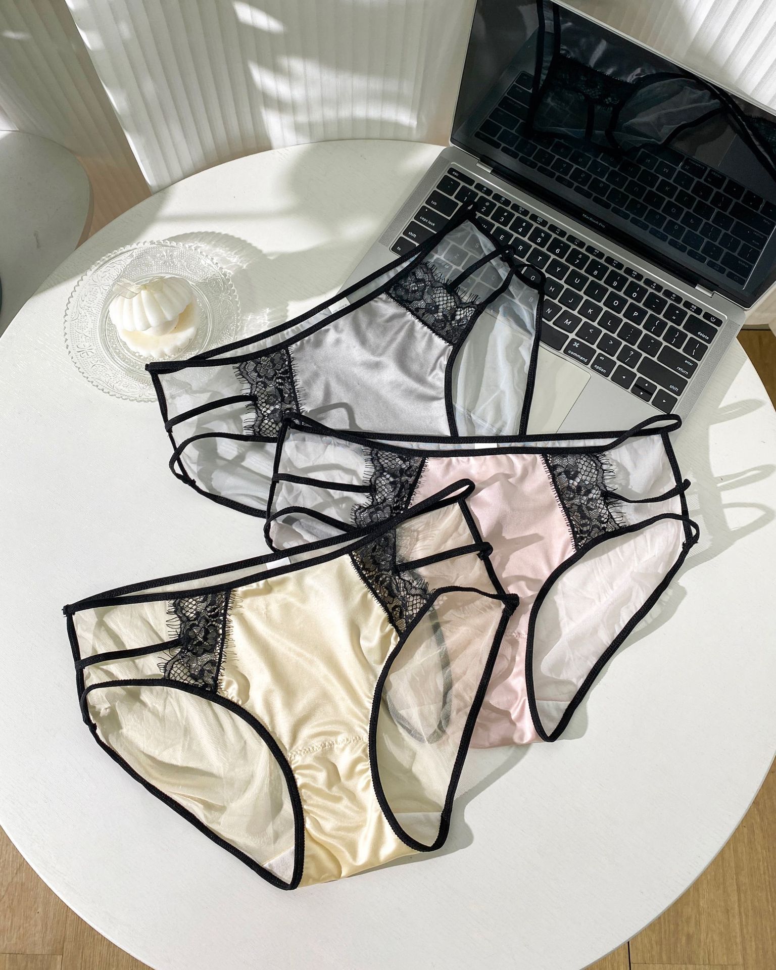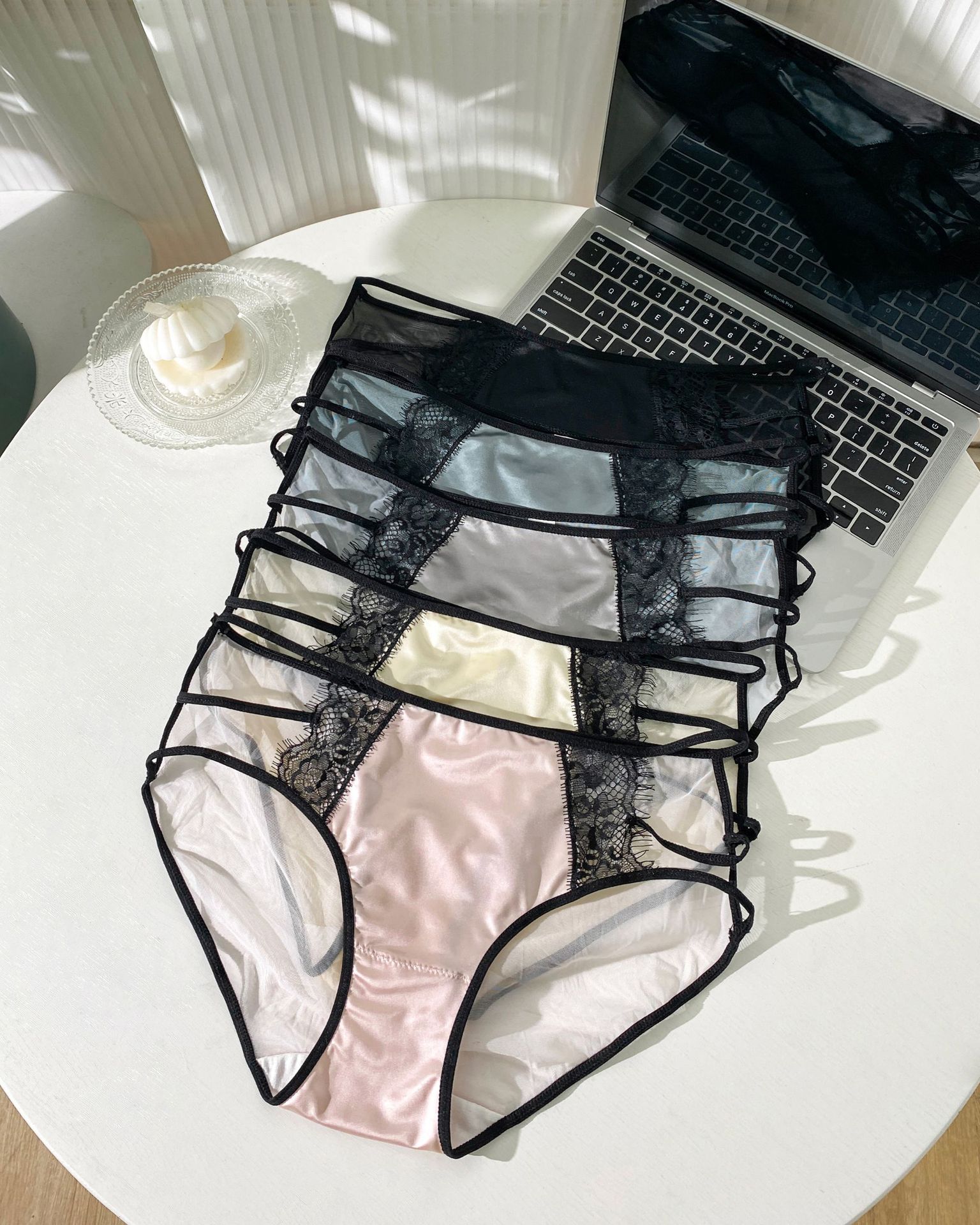 부드러운 찹쌀 아이스 실크 ~ 섹시한 속이 빈 유럽과 미국 샴페인 달콤한 낮은 허리 브리프 소녀의 순수한면 메쉬 라이트