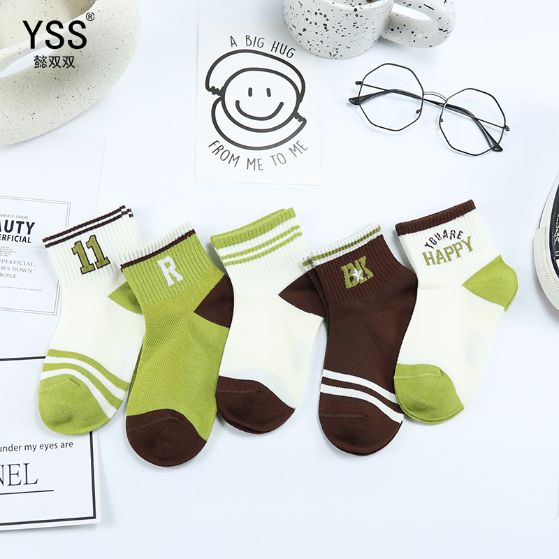 여성 더블 페어 어린이 양말 여름 새로운 메쉬 얇은 패션 브랜드 문자 양말이 학생들을위한 코튼 뼈없는 어린이 양말을 빗어스토어 가기