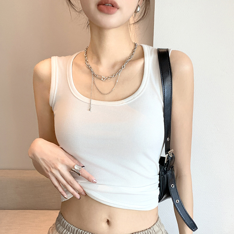 봄 새로운 작은 조끼 슬링 내부 민소매 탑 여성의 여름 외부 착용 Ins 트렌디 한 소녀 짧은베이스 셔츠 티셔츠