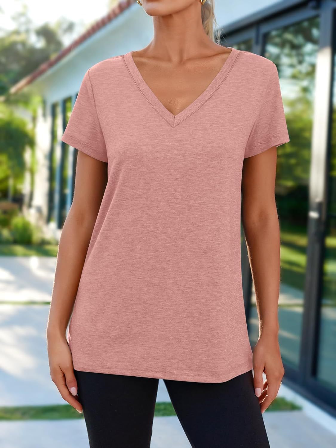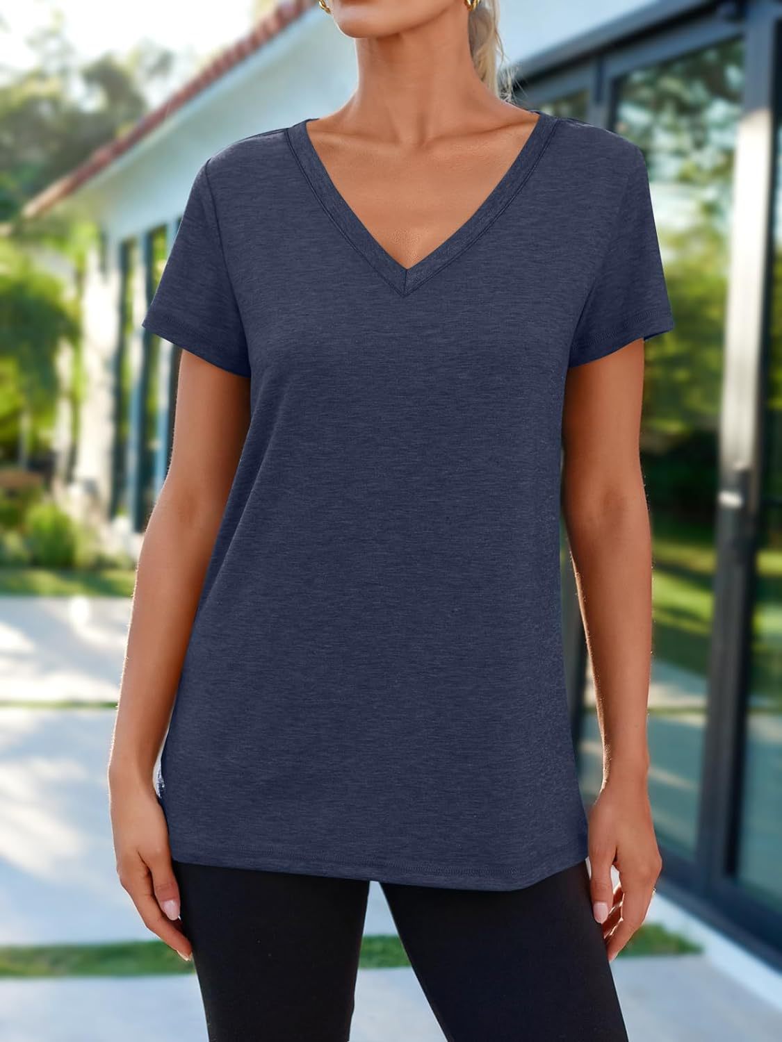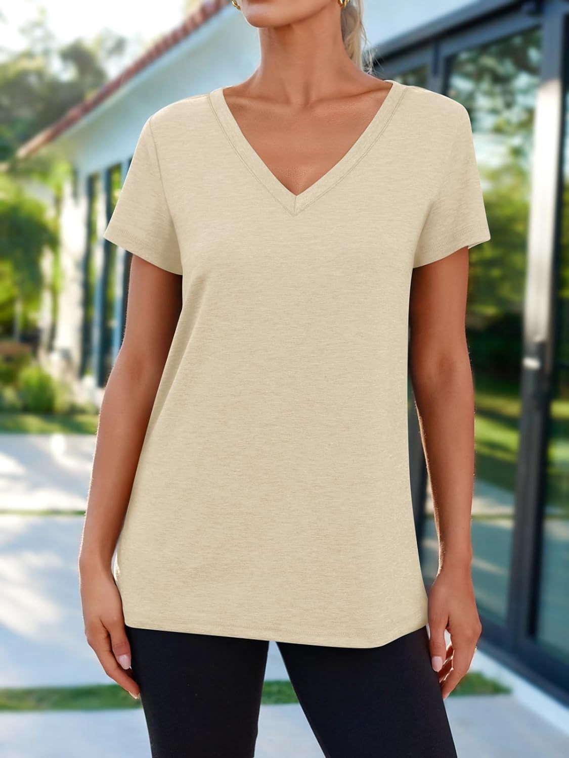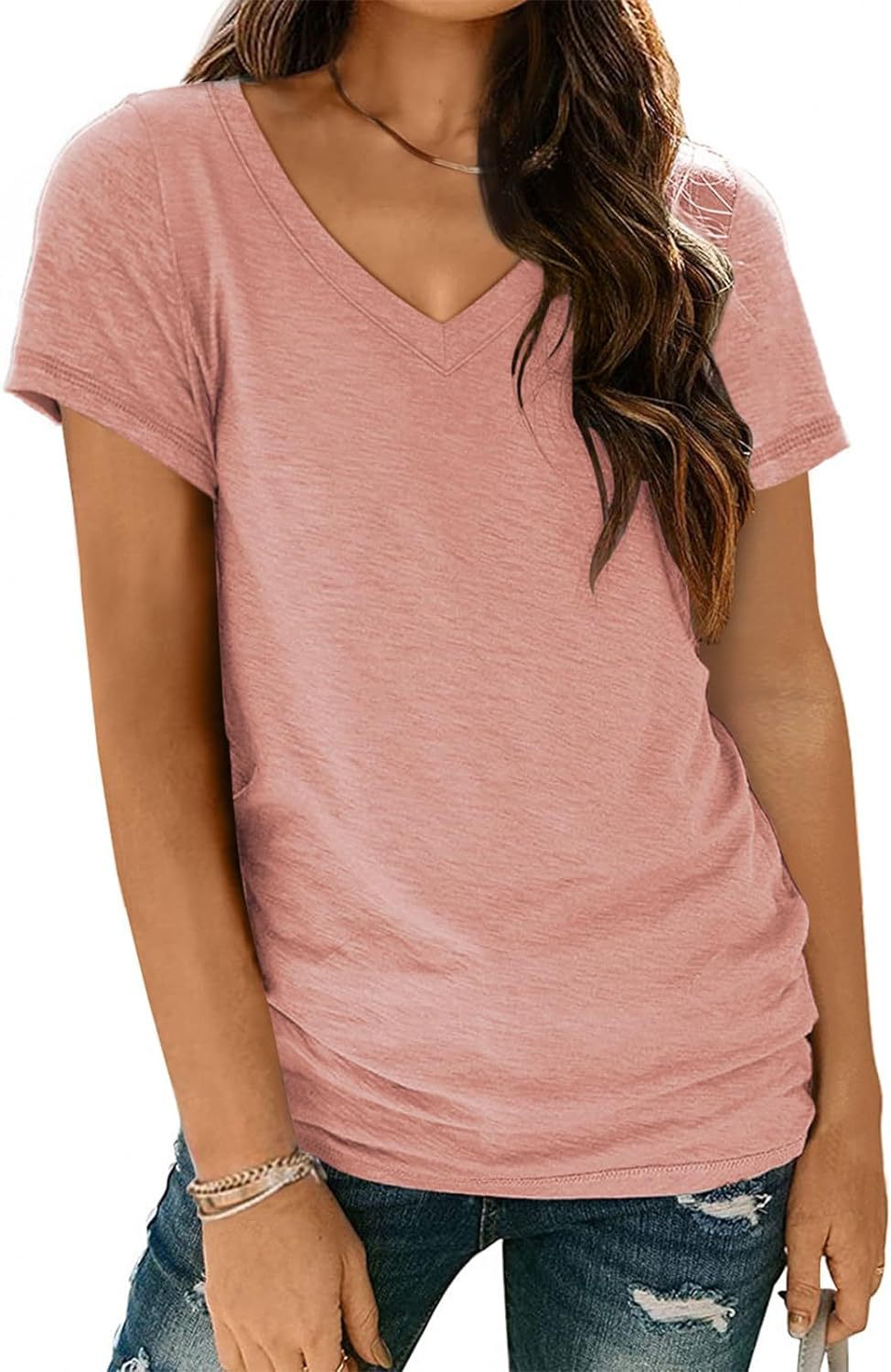 봄/여름 2024 eBay Amazon은 인기있는 유럽과 미국의 새로운 반팔 V 넥 티셔츠 최고 국경 간 대외 무역 여성 의류를 기원합니다.