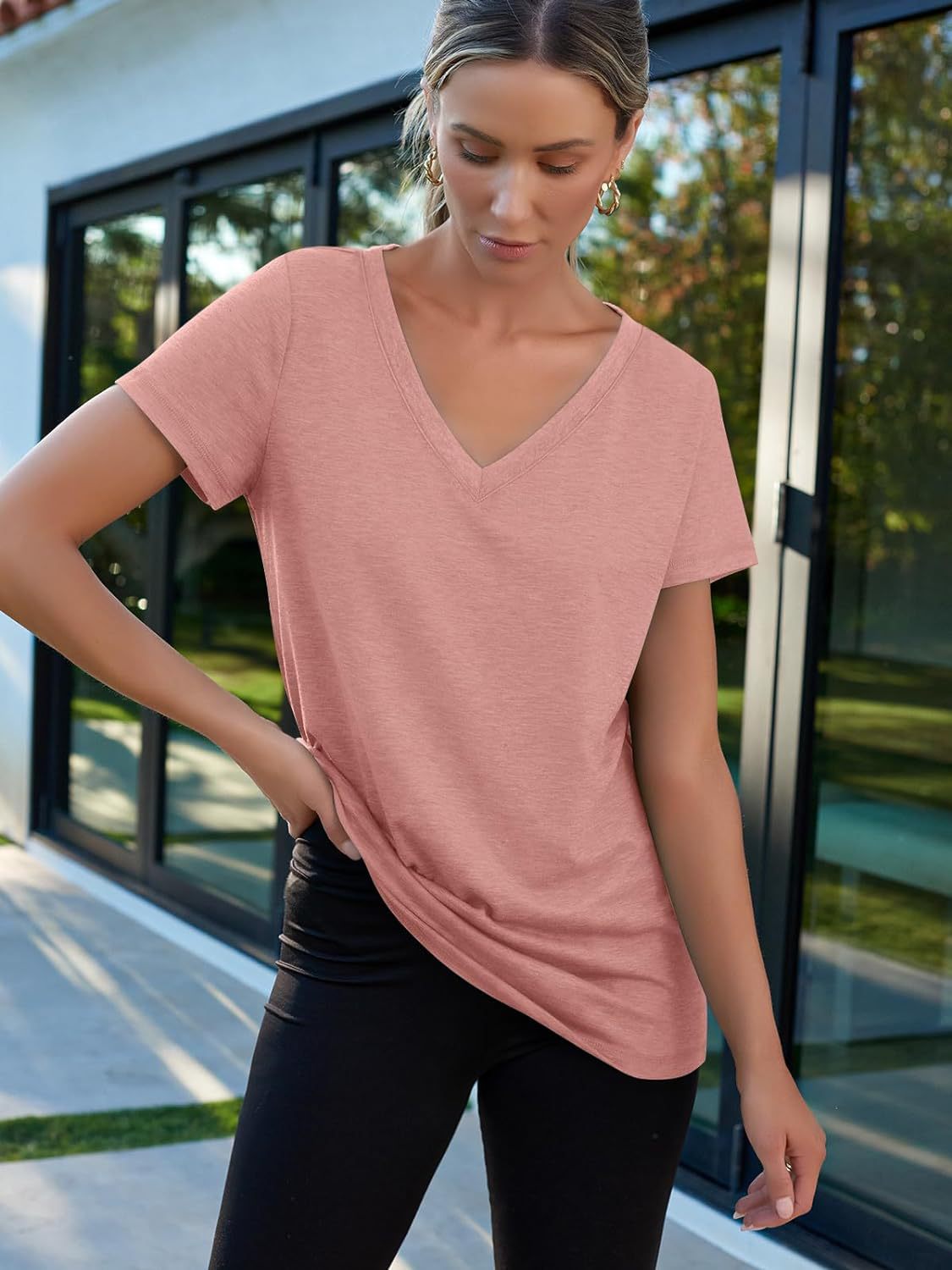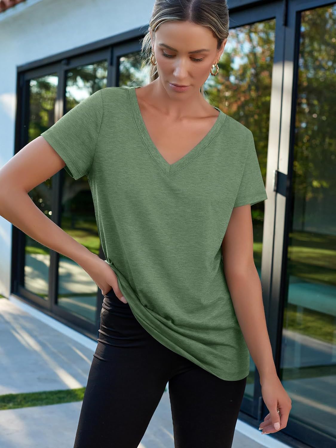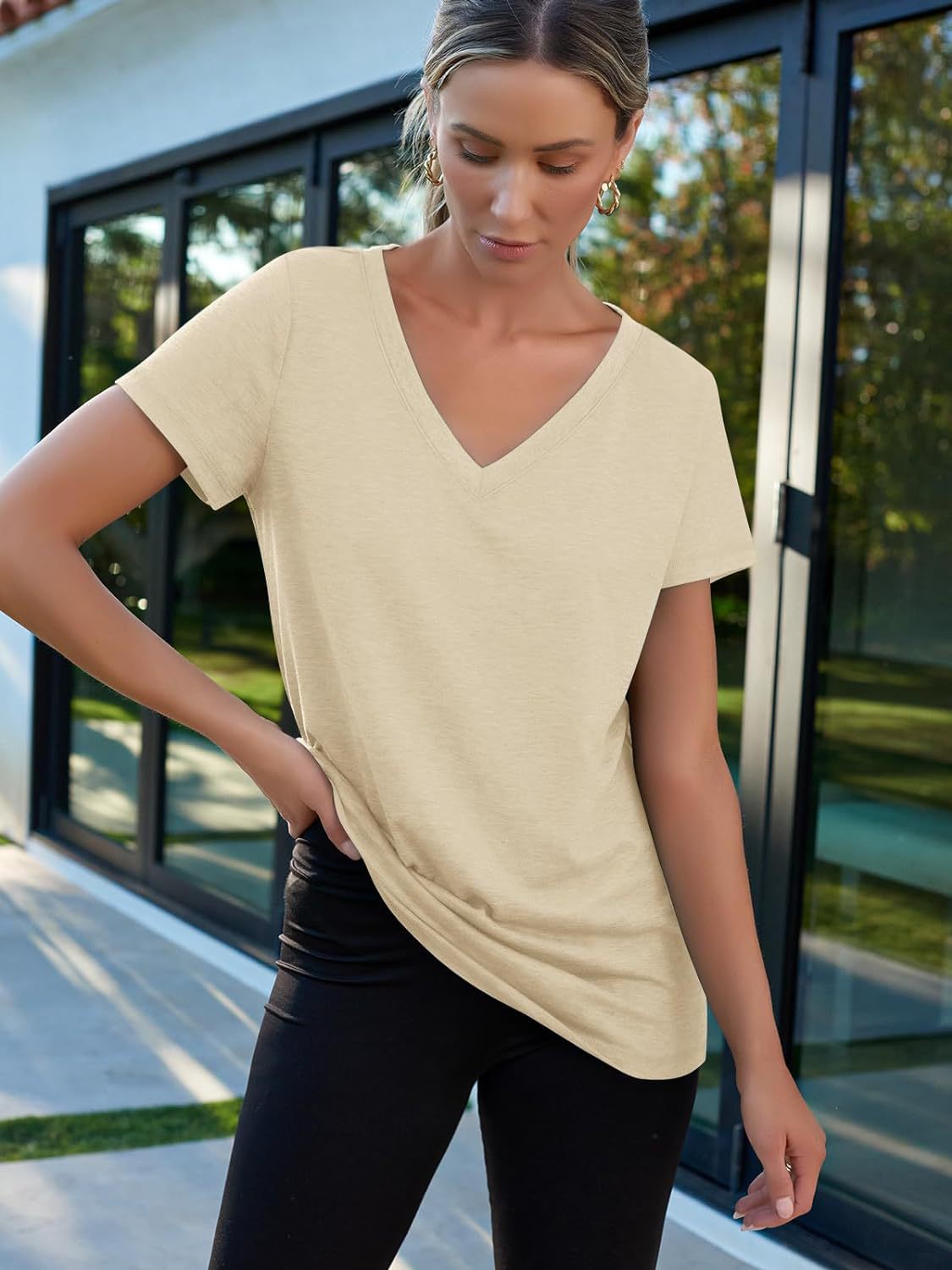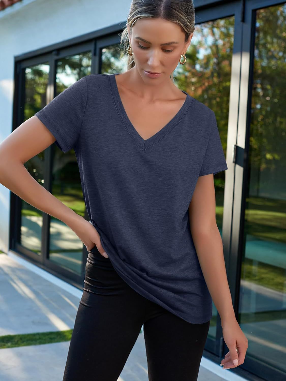 봄/여름 2024 eBay Amazon은 인기있는 유럽과 미국의 새로운 반팔 V 넥 티셔츠 최고 국경 간 대외 무역 여성 의류를 기원합니다.
