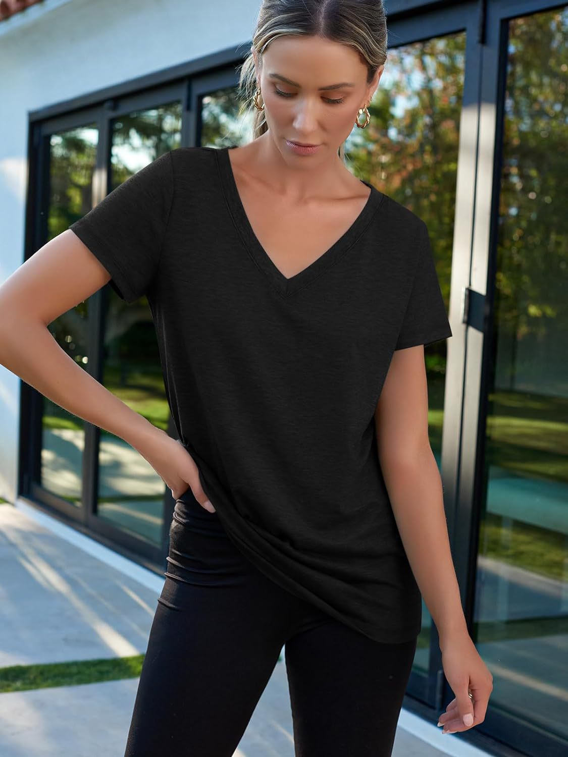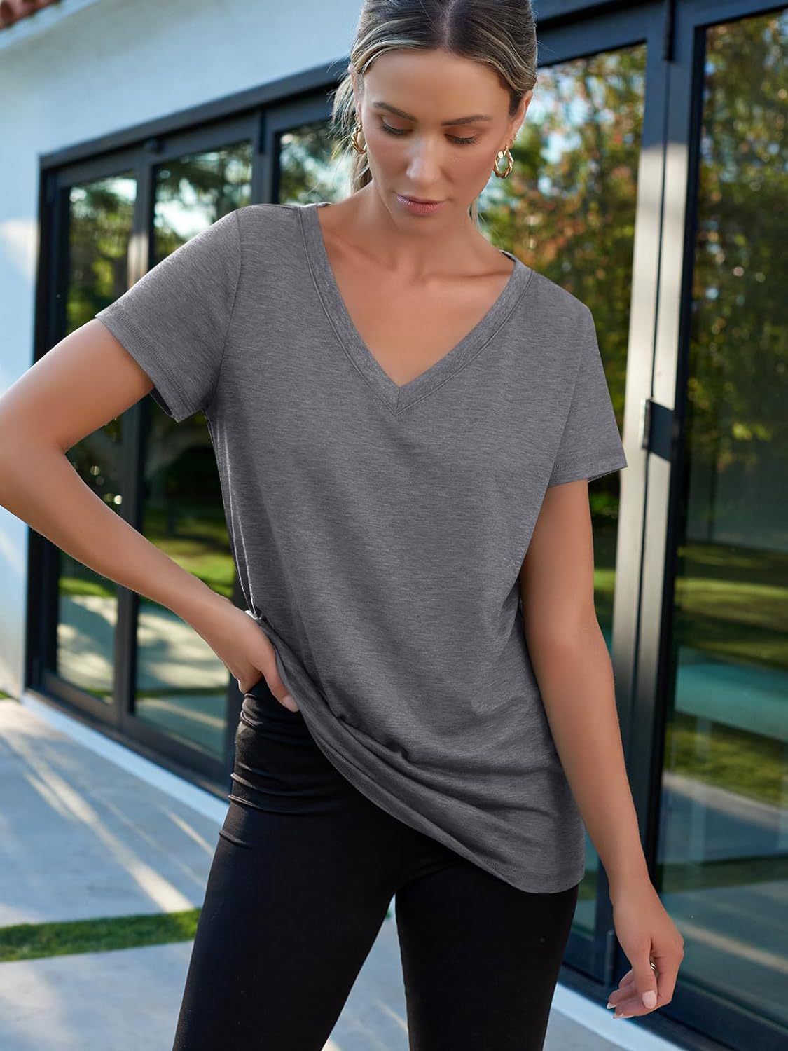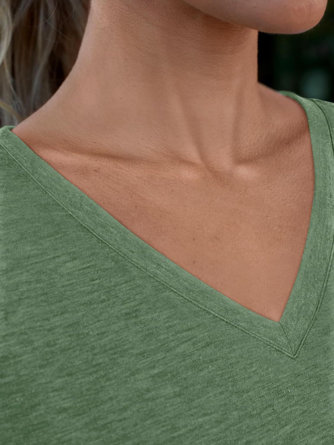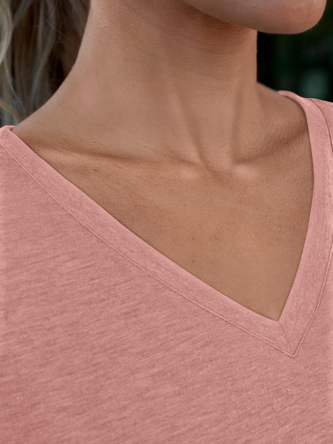 봄/여름 2024 eBay Amazon은 인기있는 유럽과 미국의 새로운 반팔 V 넥 티셔츠 최고 국경 간 대외 무역 여성 의류를 기원합니다.