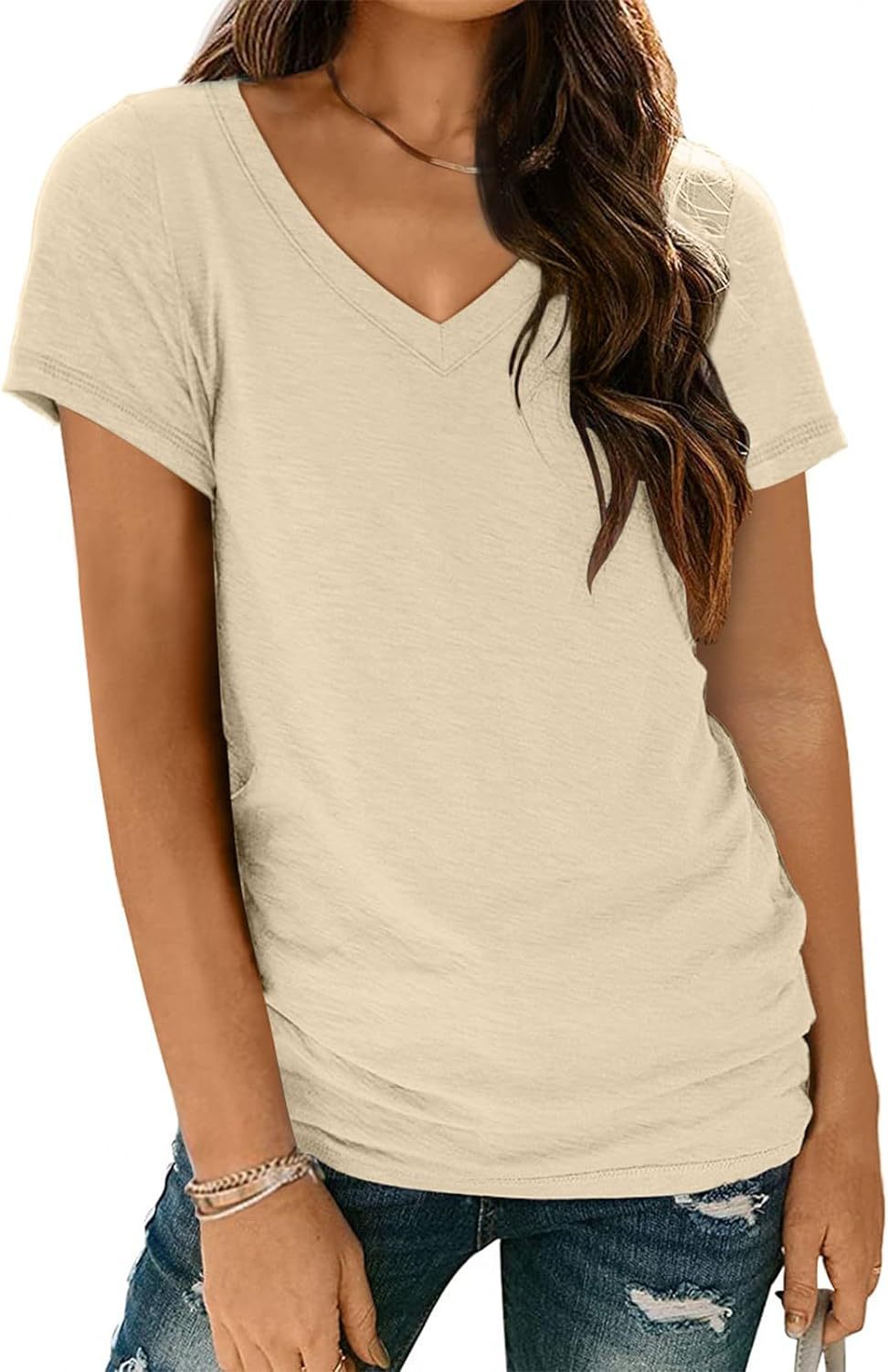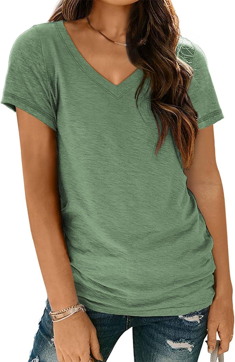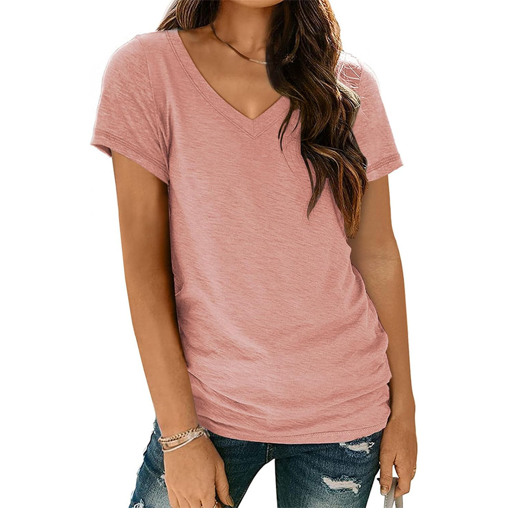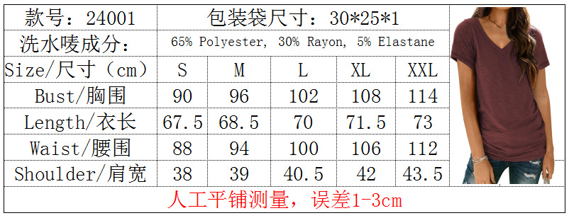 봄/여름 2024 eBay Amazon은 인기있는 유럽과 미국의 새로운 반팔 V 넥 티셔츠 최고 국경 간 대외 무역 여성 의류를 기원합니다.스토어 가기