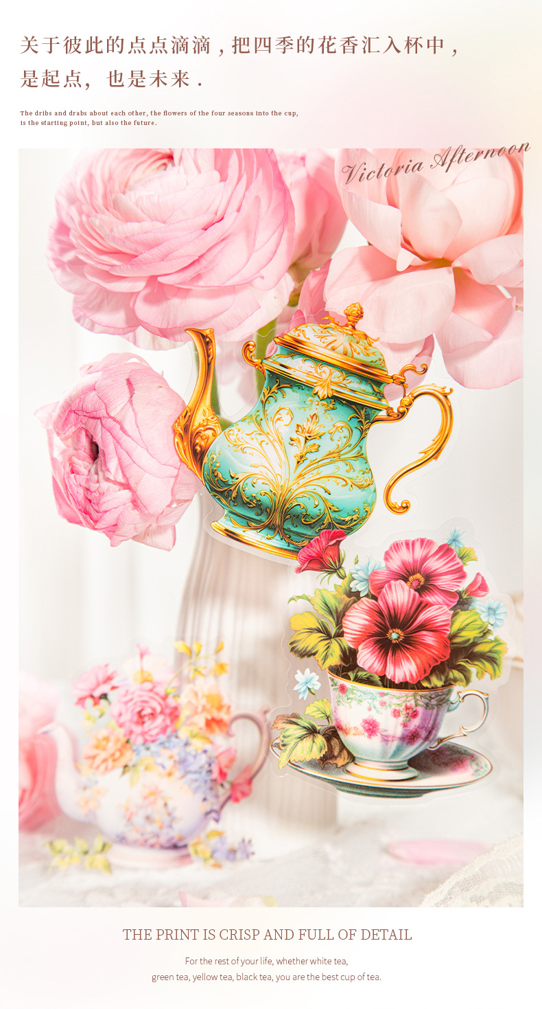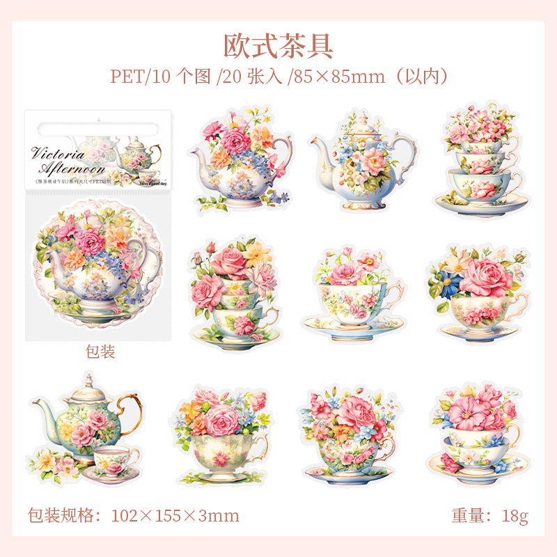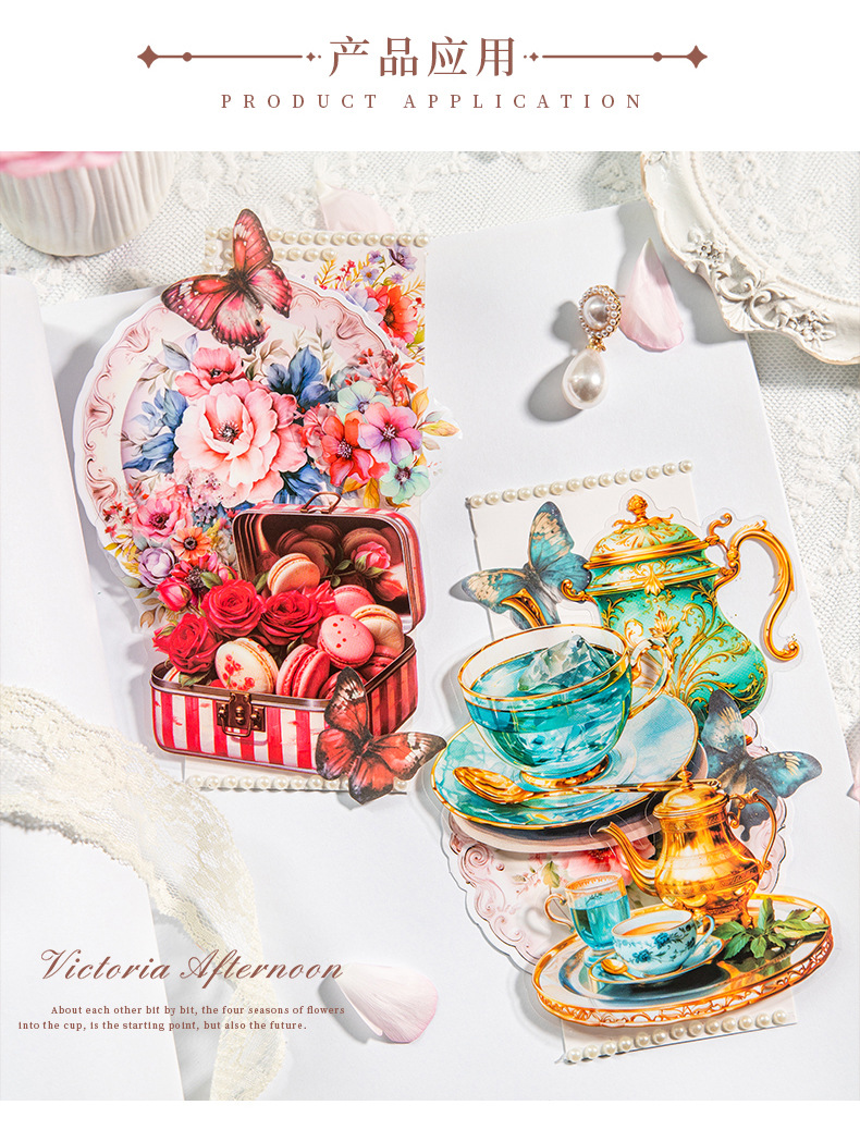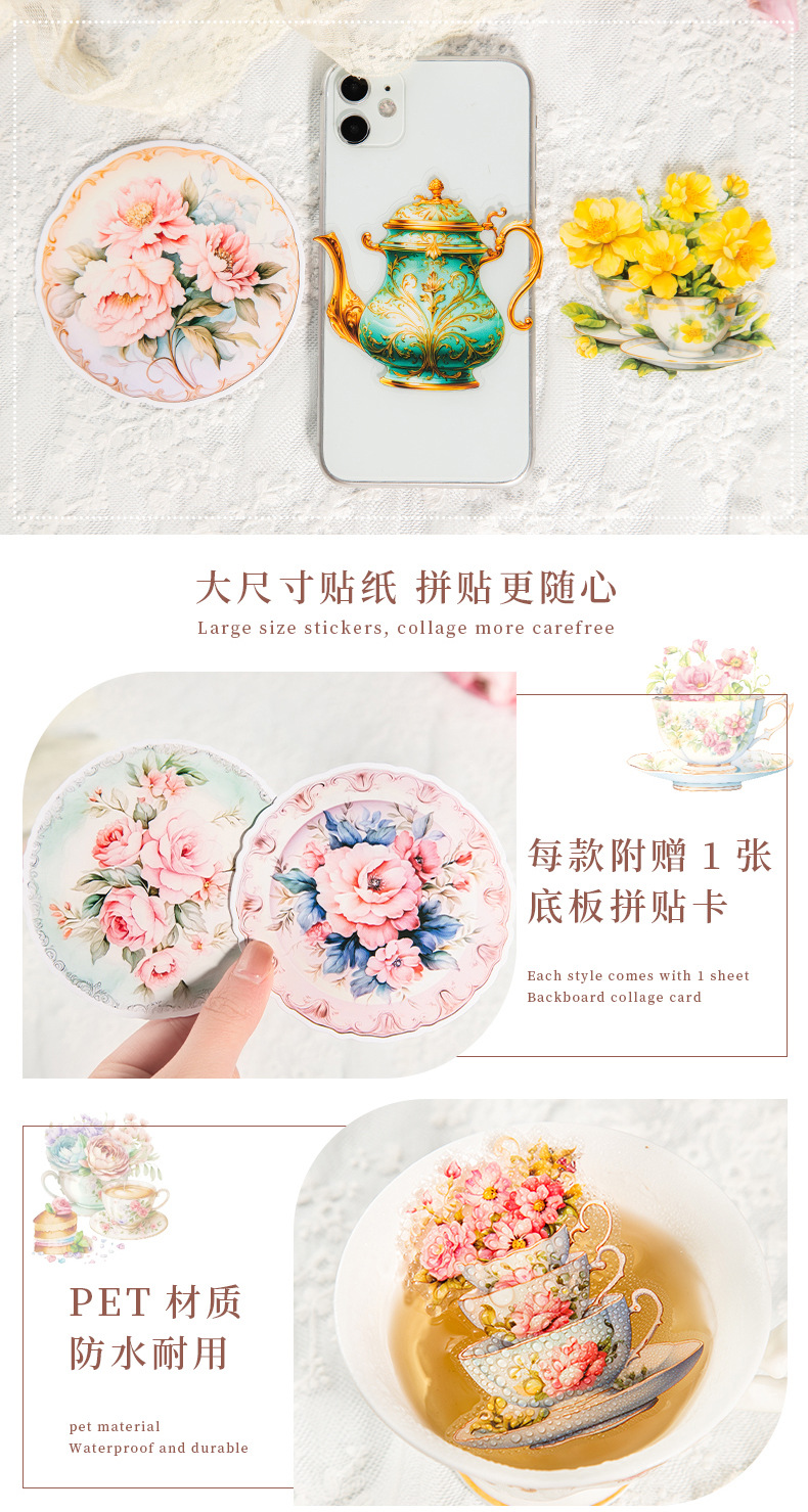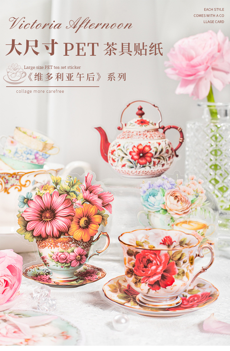 아름다운 날 애완 동물 차 세트 스티커 빅토리아 오후 시리즈 대형 손 계정 재료 장식 6 모델